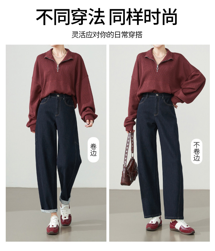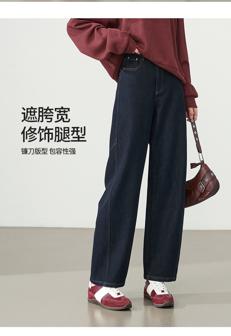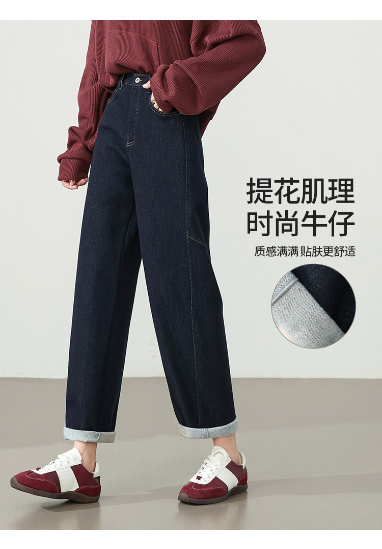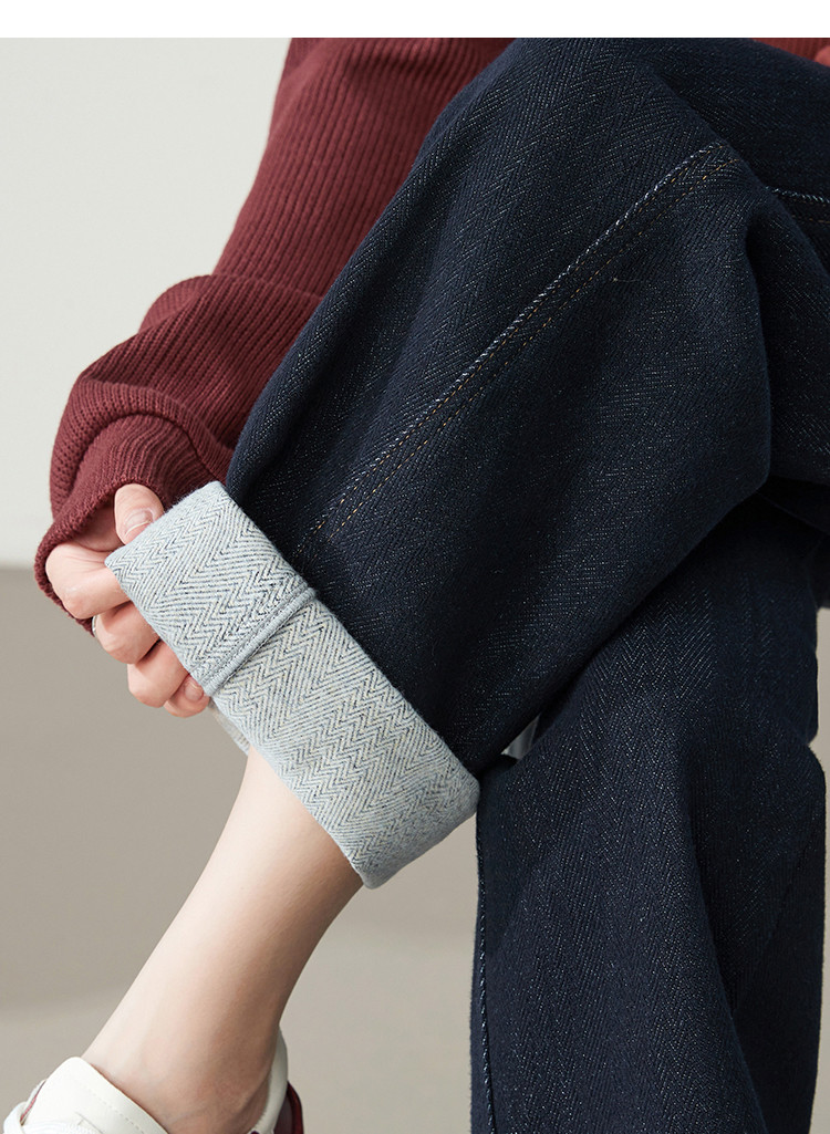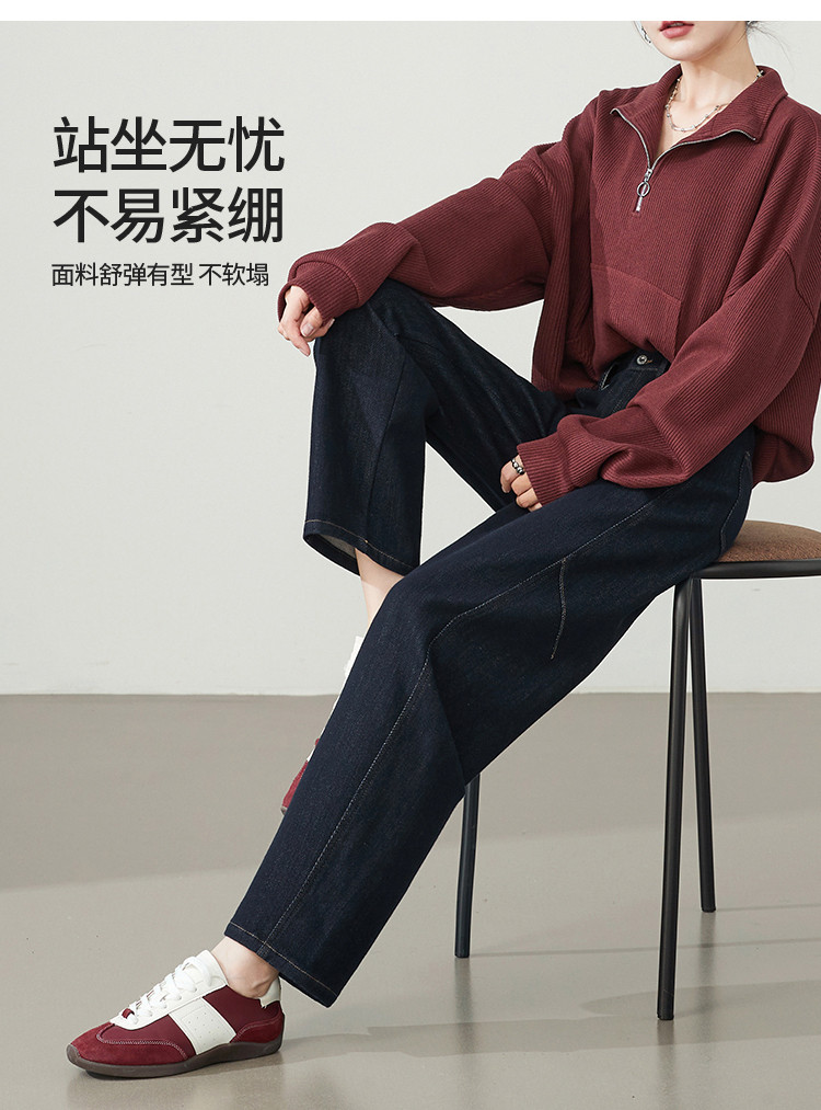【初春-人字纹-镰刀裤】逸阳不易褪色显瘦弯刀提花牛仔长裤8221VB1