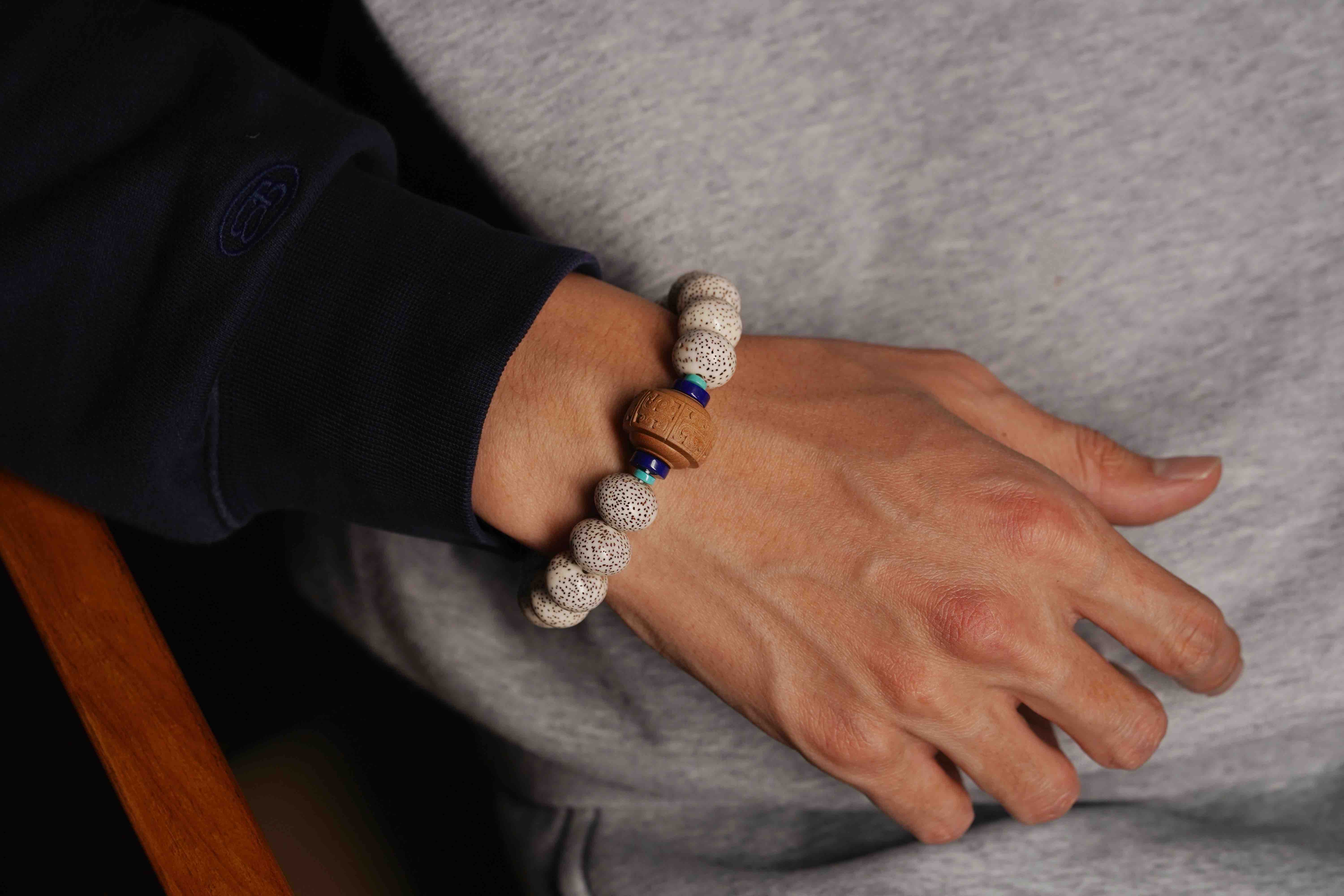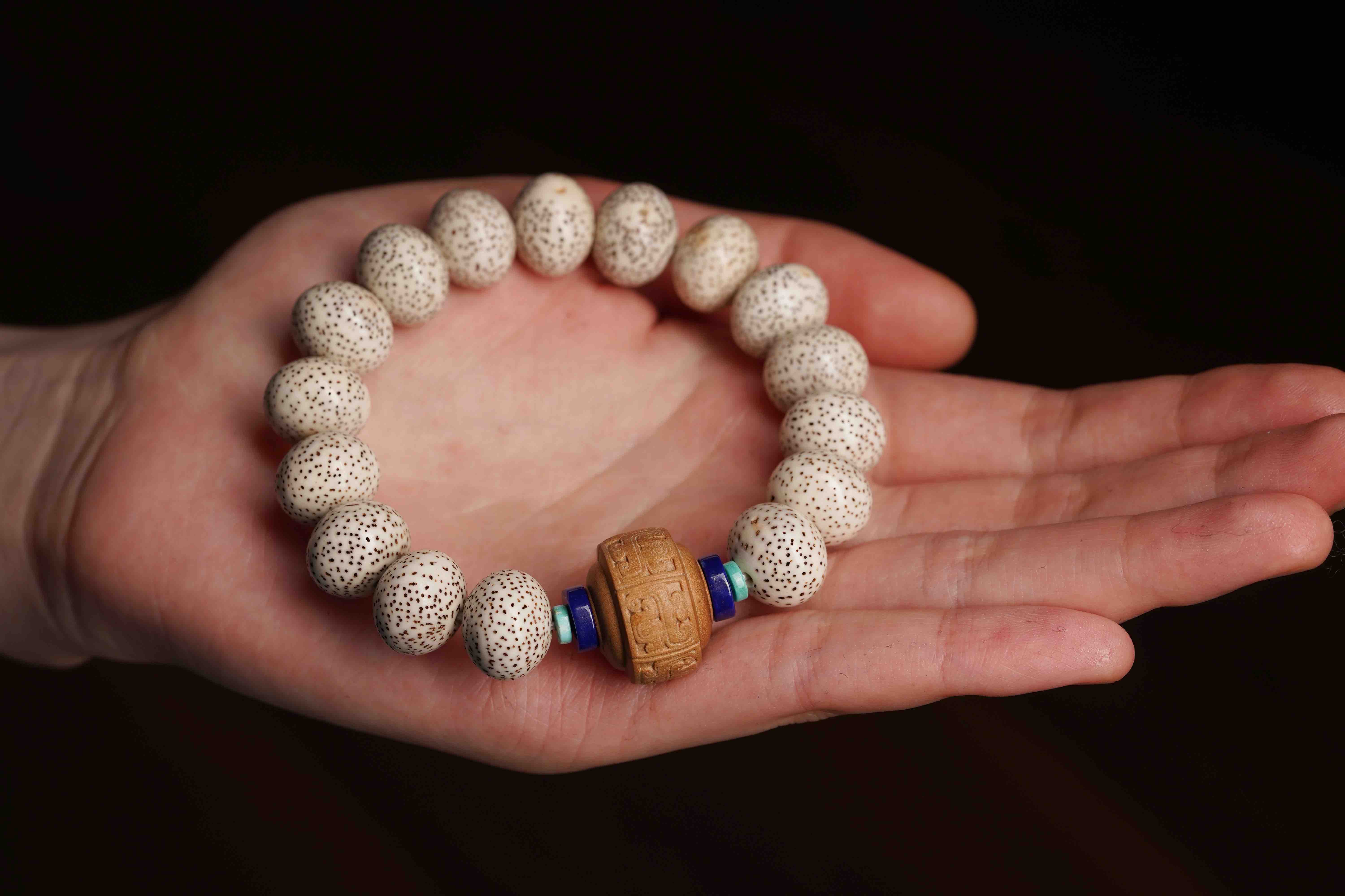 我们这次特意研发的,你看中间一颗老山檀就不少钱了,星月就是有一种让人喜欢的力量。
