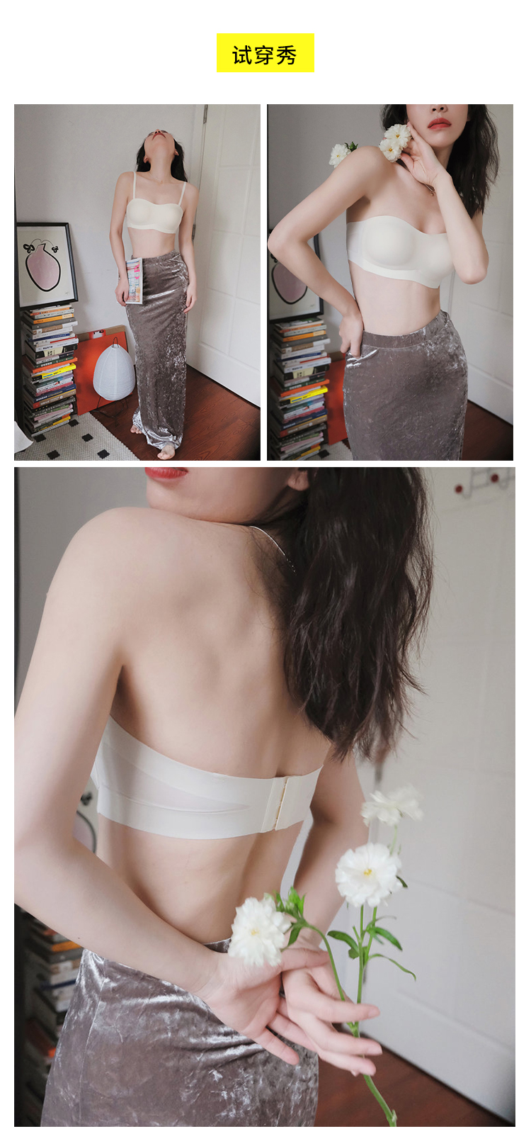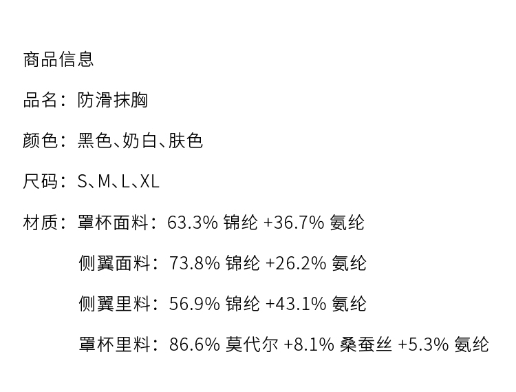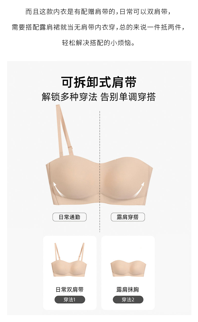 【活动商品,不退不换】防滑抹胸内衣 蚕丝内里 贴心呵护 全氨防滑 亲肤舒适 可拆卸肩带 解锁穿法~