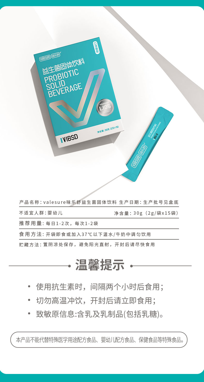 Valesure味乐舒益生菌固体饮料 VIBSD 2g*5支/2g*15支