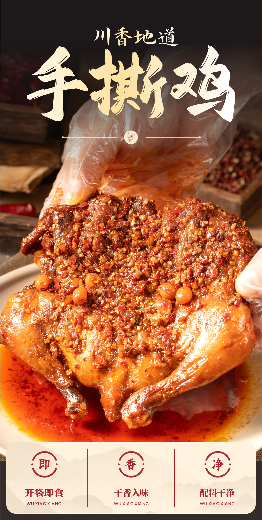 伍香香川味手撕鸡380g 肉嫩不柴 越吃越香 肉质紧实口感好 秘制老卤慢卤入味 过油锁住香味 真空包装锁鲜