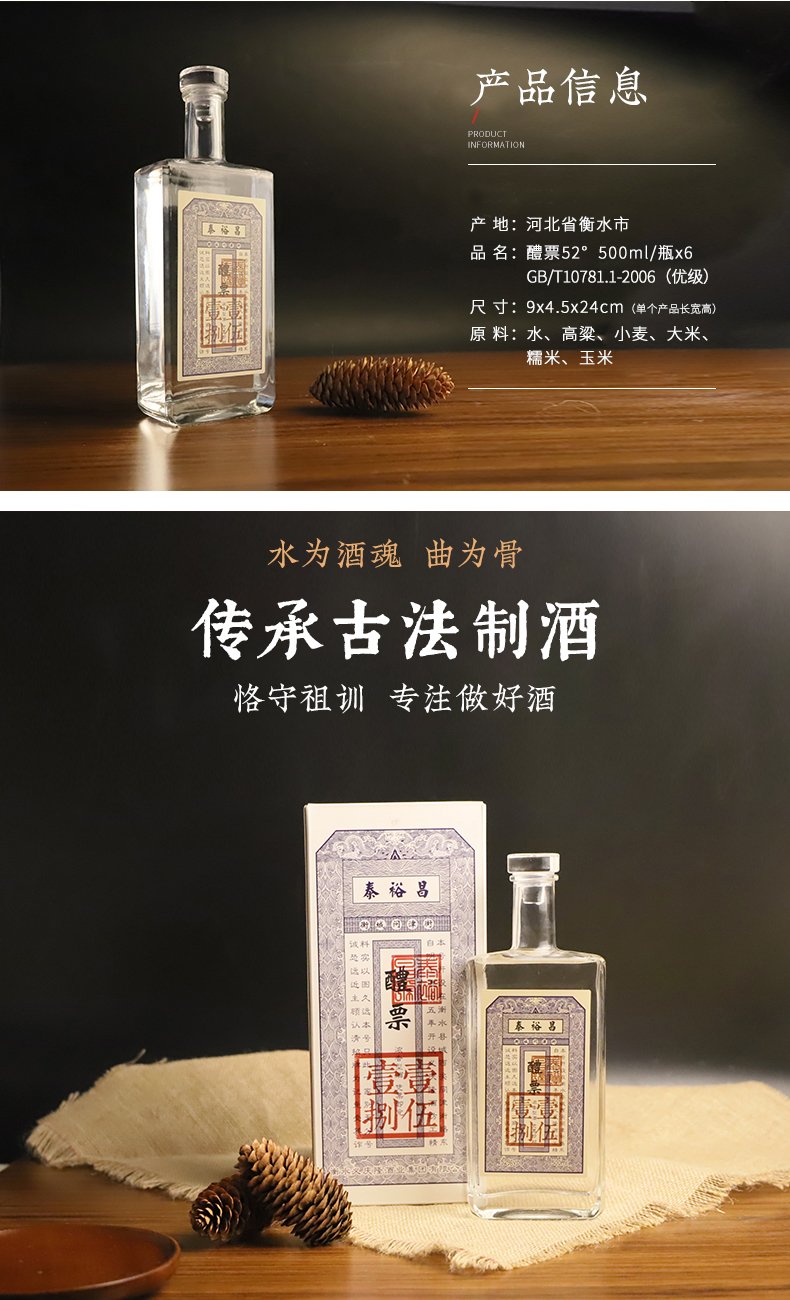 [醴票]42/52度-泰裕昌醴票酒-礼盒装-浓香型白酒-500ml-6瓶整箱