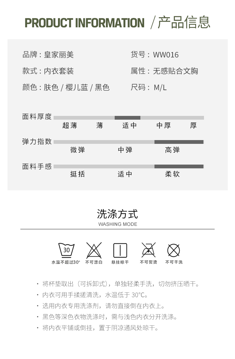 【秒杀品不退不换】皇家丽美轻羽系列背心式无痕收副乳内衣裸感无钢圈文胸套装女WW016