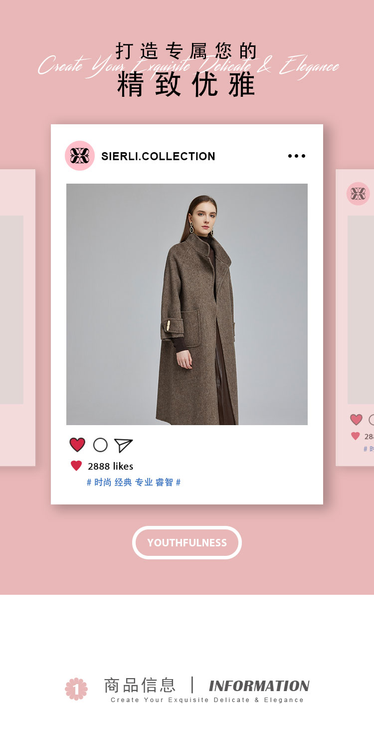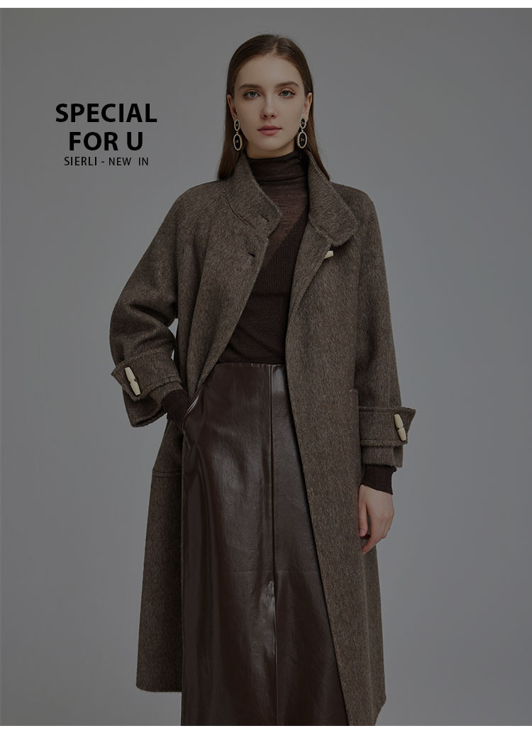 NH951斯尔丽23冬季新款立领气质简约中长款双面呢羊毛大衣