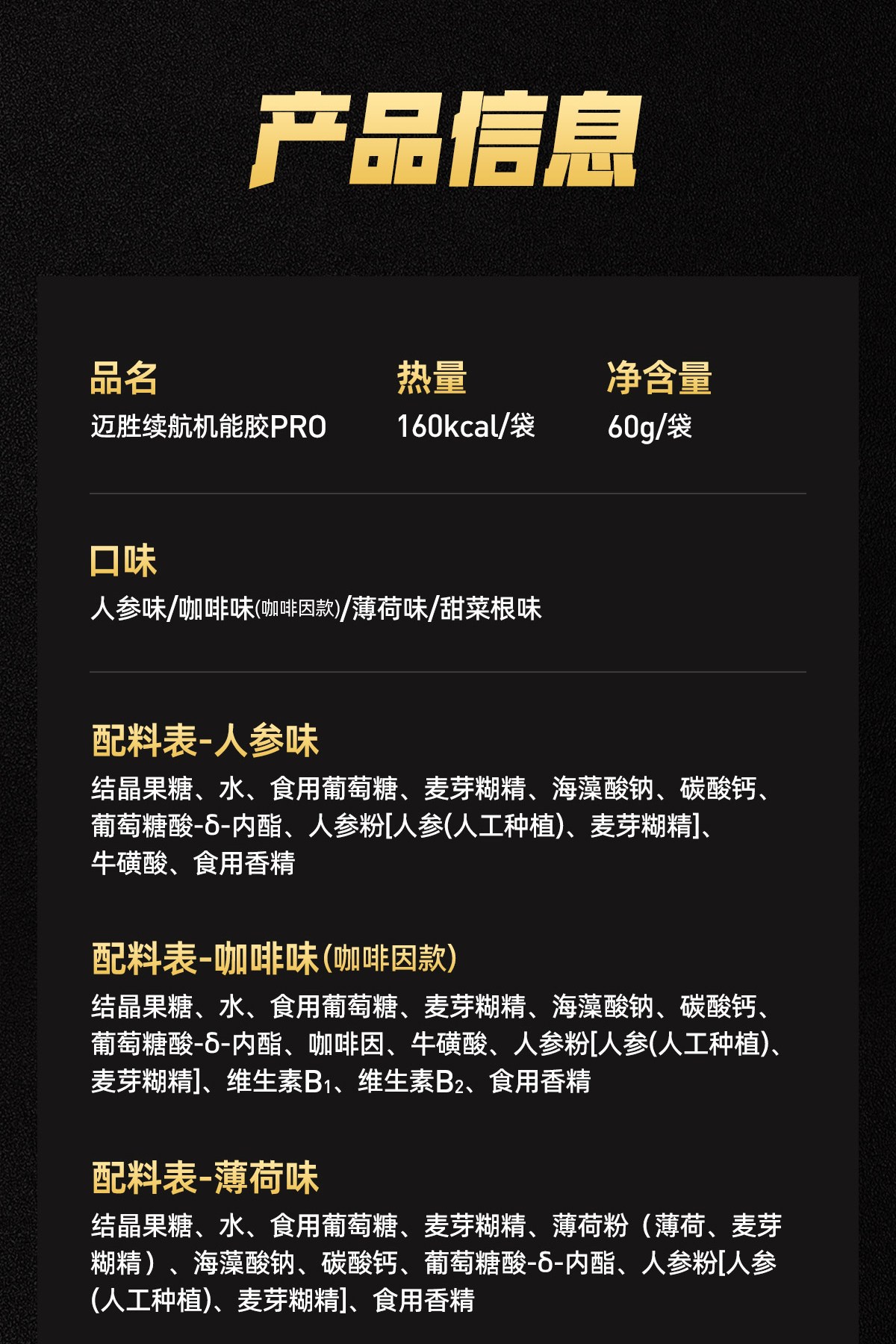迈胜 续航机能黑胶PRO 60g/支