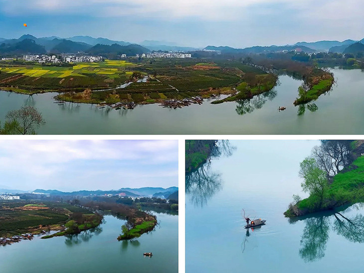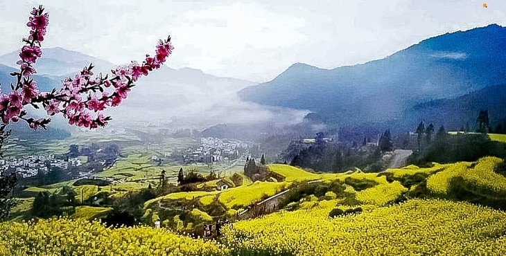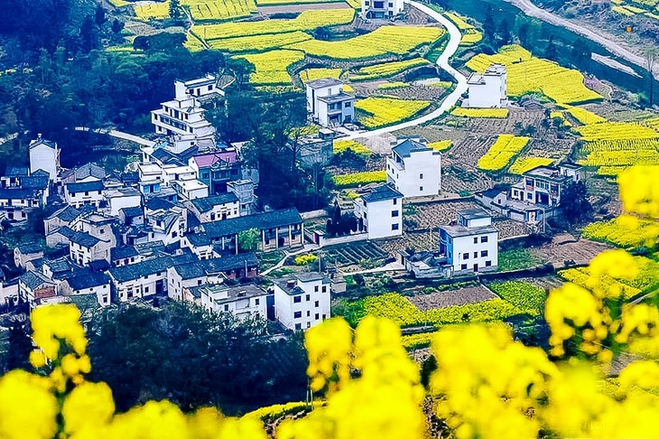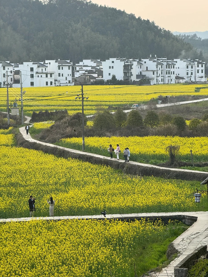 古樟号称“天下第一樟”,需要10个人环绕才能抱住。这颗古樟虽显得沧桑,但树冠枝繁叶茂,一直被当地人视为“树神”。青砖黛瓦的徽派建筑错落有致,与古樟相互映衬,仿佛在诉说着古老的故事。蓝天白云下,小火车缓缓行驶,悠悠穿越那一大片油菜花, 就像走进了童话世界,拍照打卡绝绝子