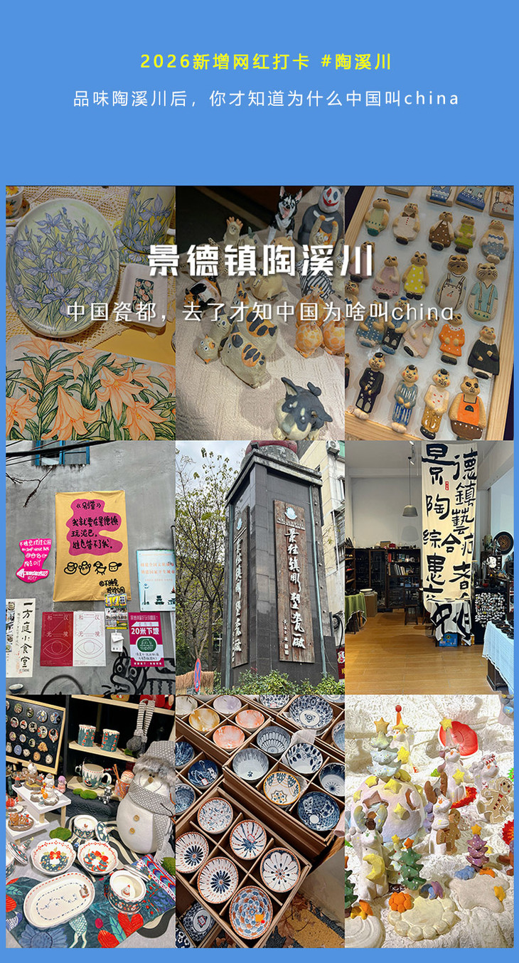 - 下午我们前往中国瓷都景德镇,打卡网红陶溪川。(我们是纯玩团,只去网红陶溪川打卡,不去购物店或购物工厂,如需购买景德镇陶瓷可在陶溪川附近购买)
