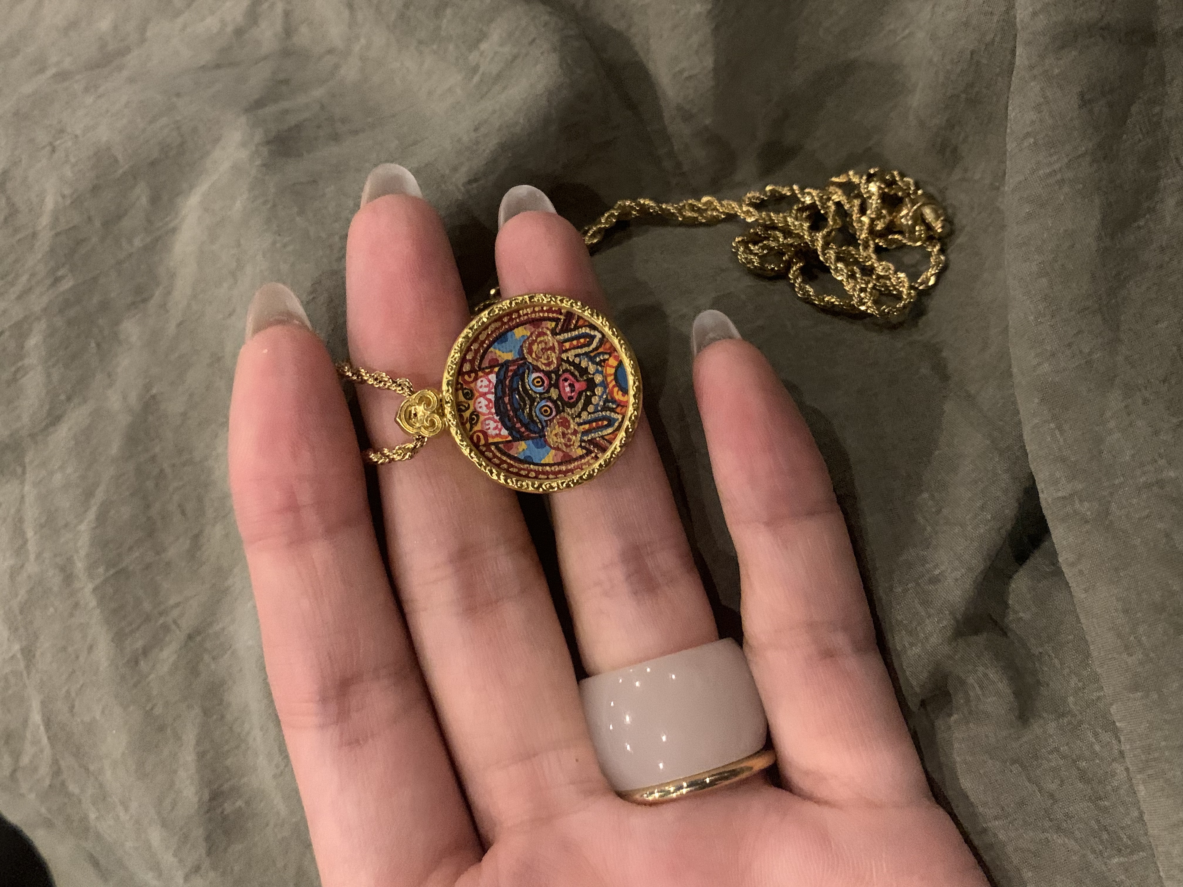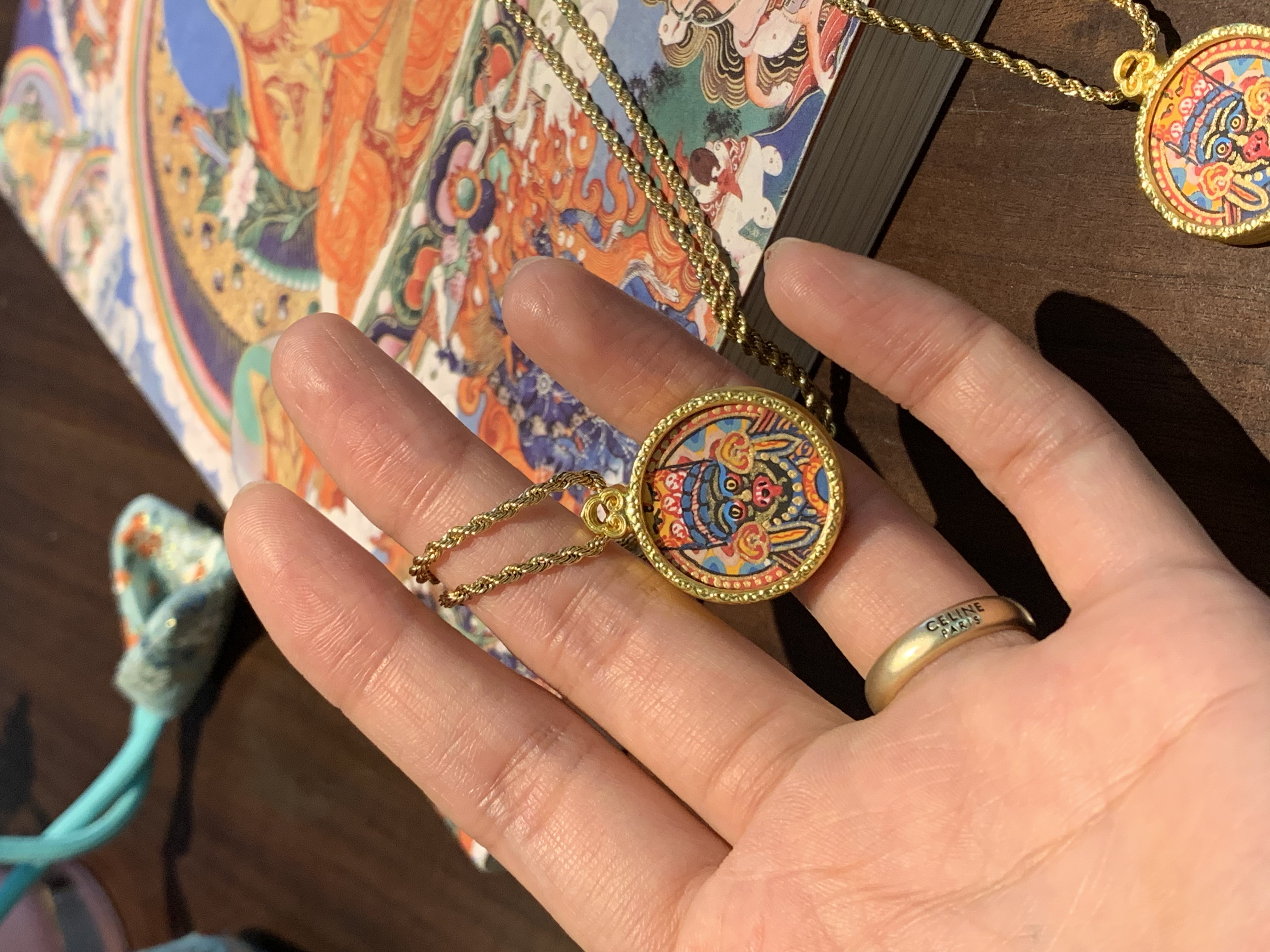 电镀金链子经特殊工艺处理,具备良好保色性,正常佩戴不易掉色。但唐卡盒表面雕花纹路需格外注意防护:建议避免直接接触汗水、护肤品及香水等腐蚀性液体,出汗时尽量隔着衣物佩戴,日常妥善收纳,可有效延长饰品使用寿命。
