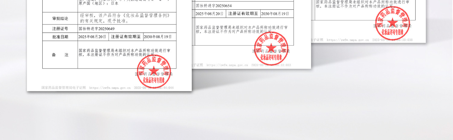 国家药监局提示您:宣称用于祛斑美白、防晒、染发、烫发等的化妆品为特殊用途化妆品,产品标签上应标注‘国妆特字’或者‘国妆特进字’的批准文号