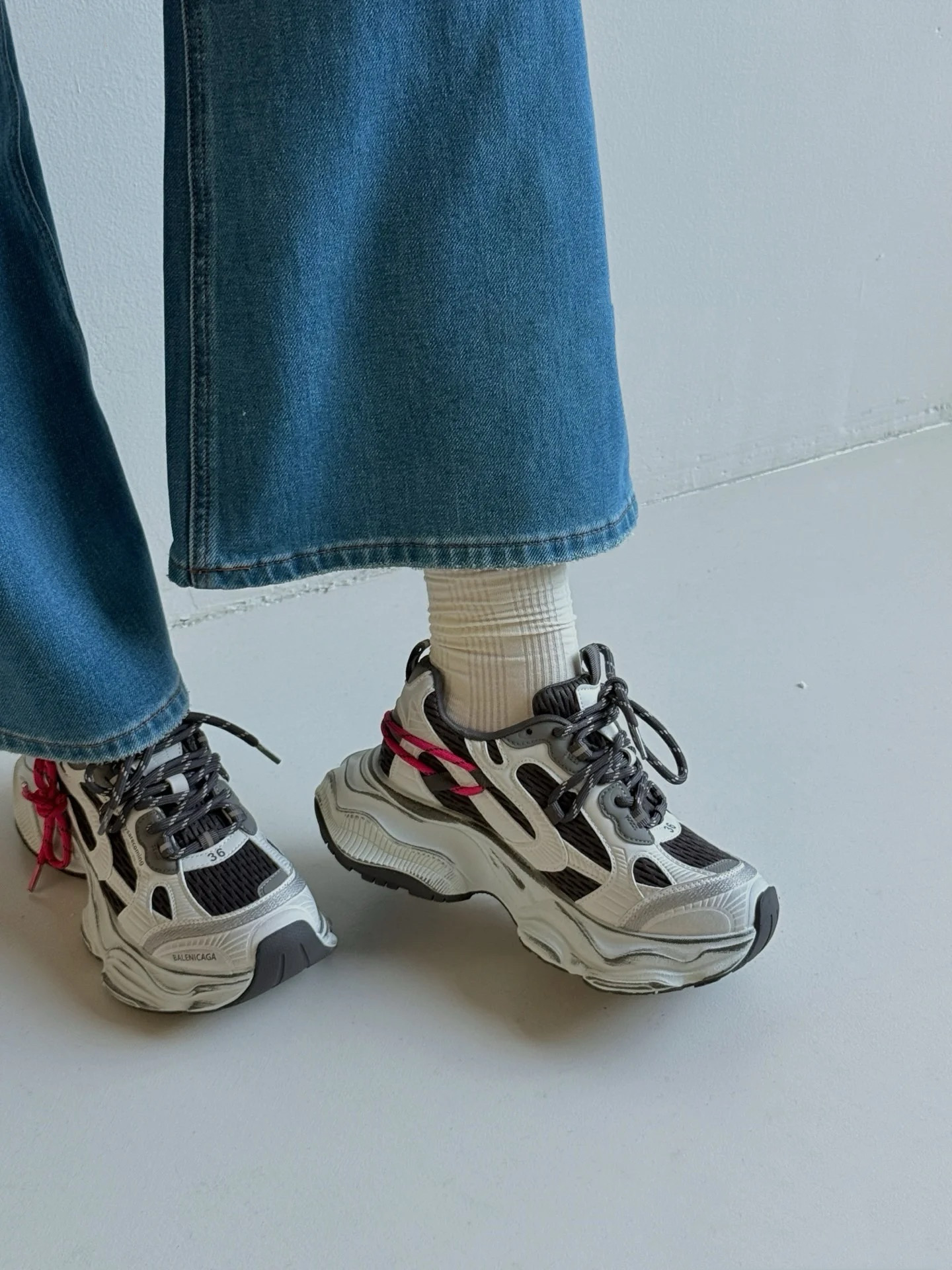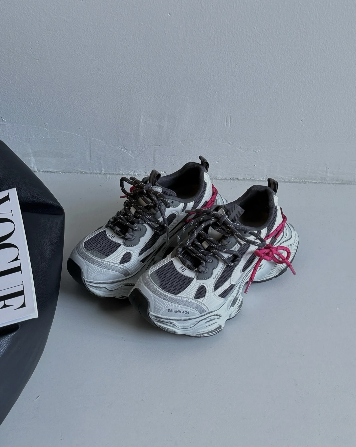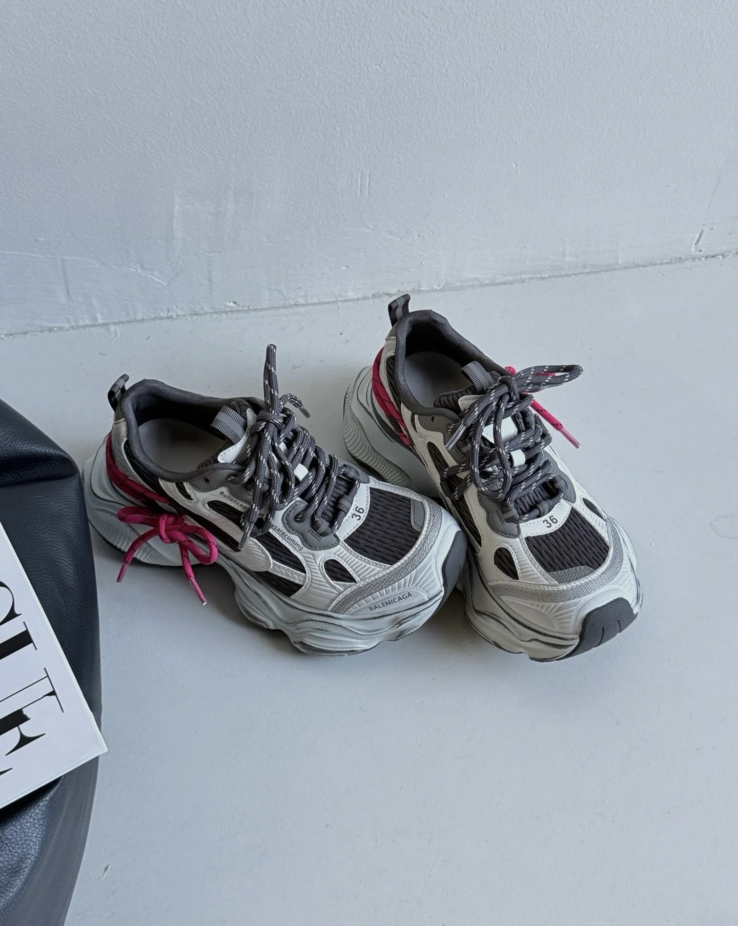 255 货号210766255 dx 2026年新款🔥心动红线双做旧老爹鞋也太顶了💥 真皮➕网,组合鞋底,底层为橡胶7cm。银灰做旧鞋身搭配玫红抽绳撞色,美式街头感直接拉满~流线型的鞋身设计超显脚小,厚底还能悄悄增高,踩上去软乎乎的巨舒服,搭运动裤、阔腿裤都超有范儿,春日穿搭的氛围感被它狠狠拿捏住啦