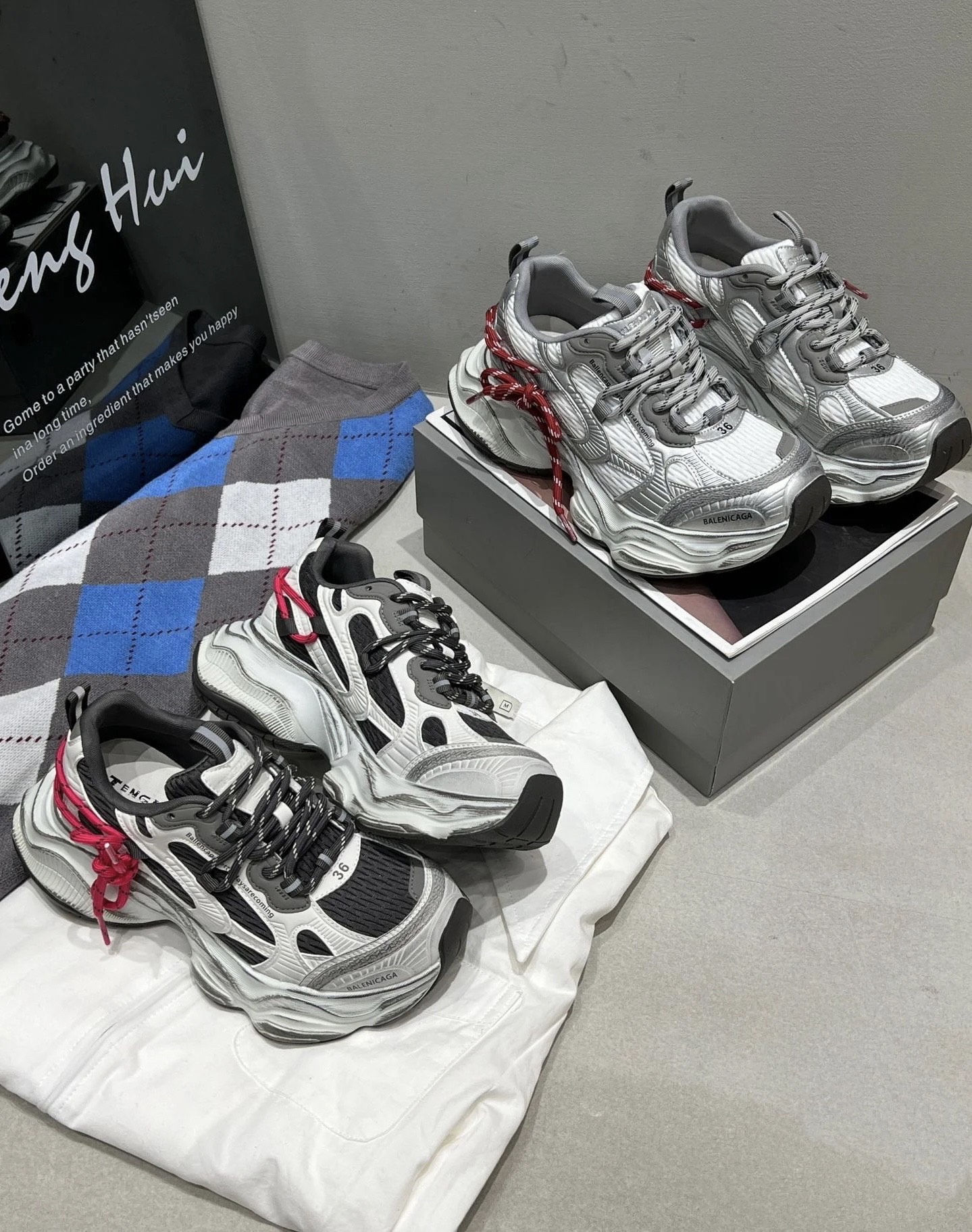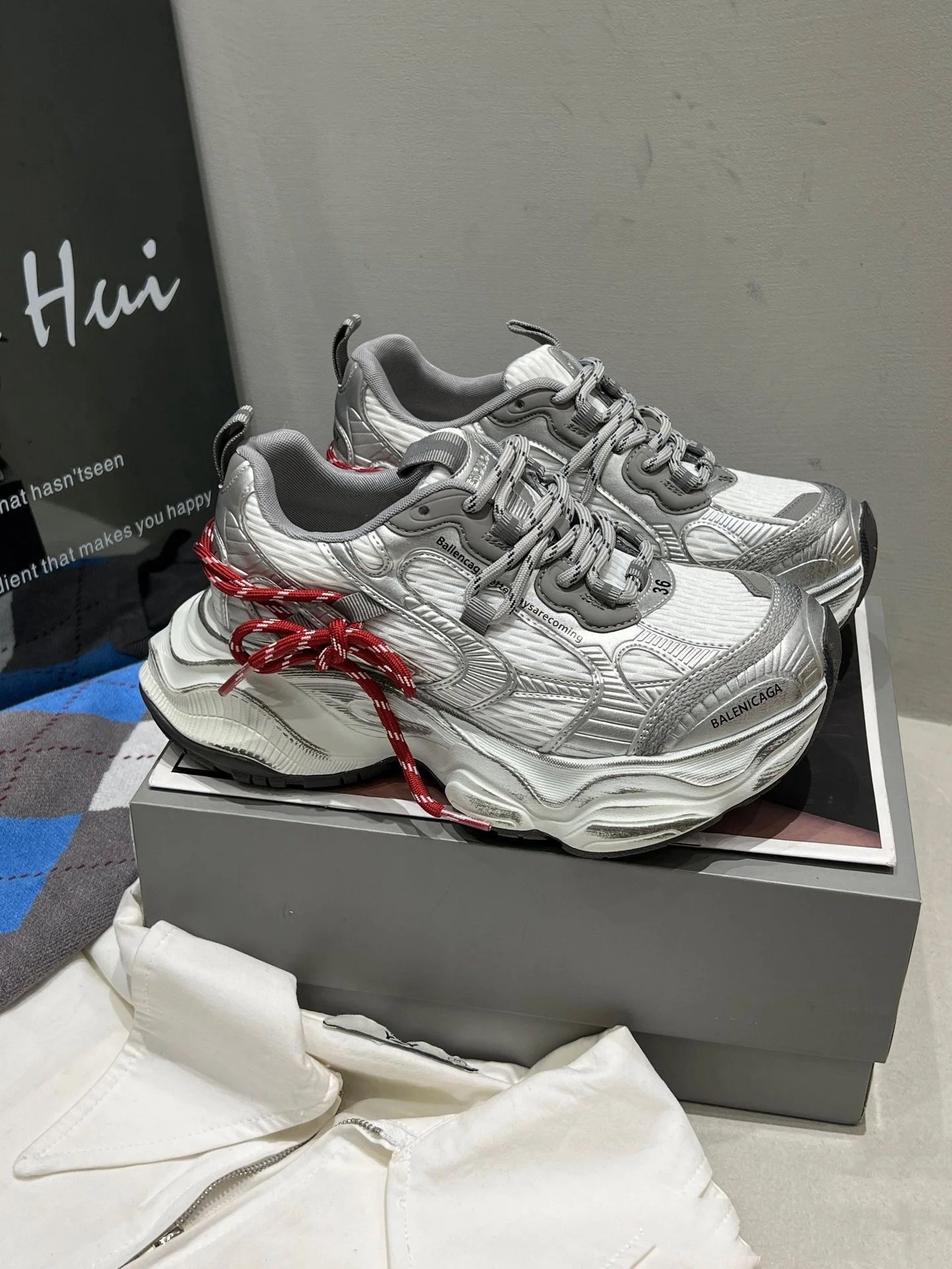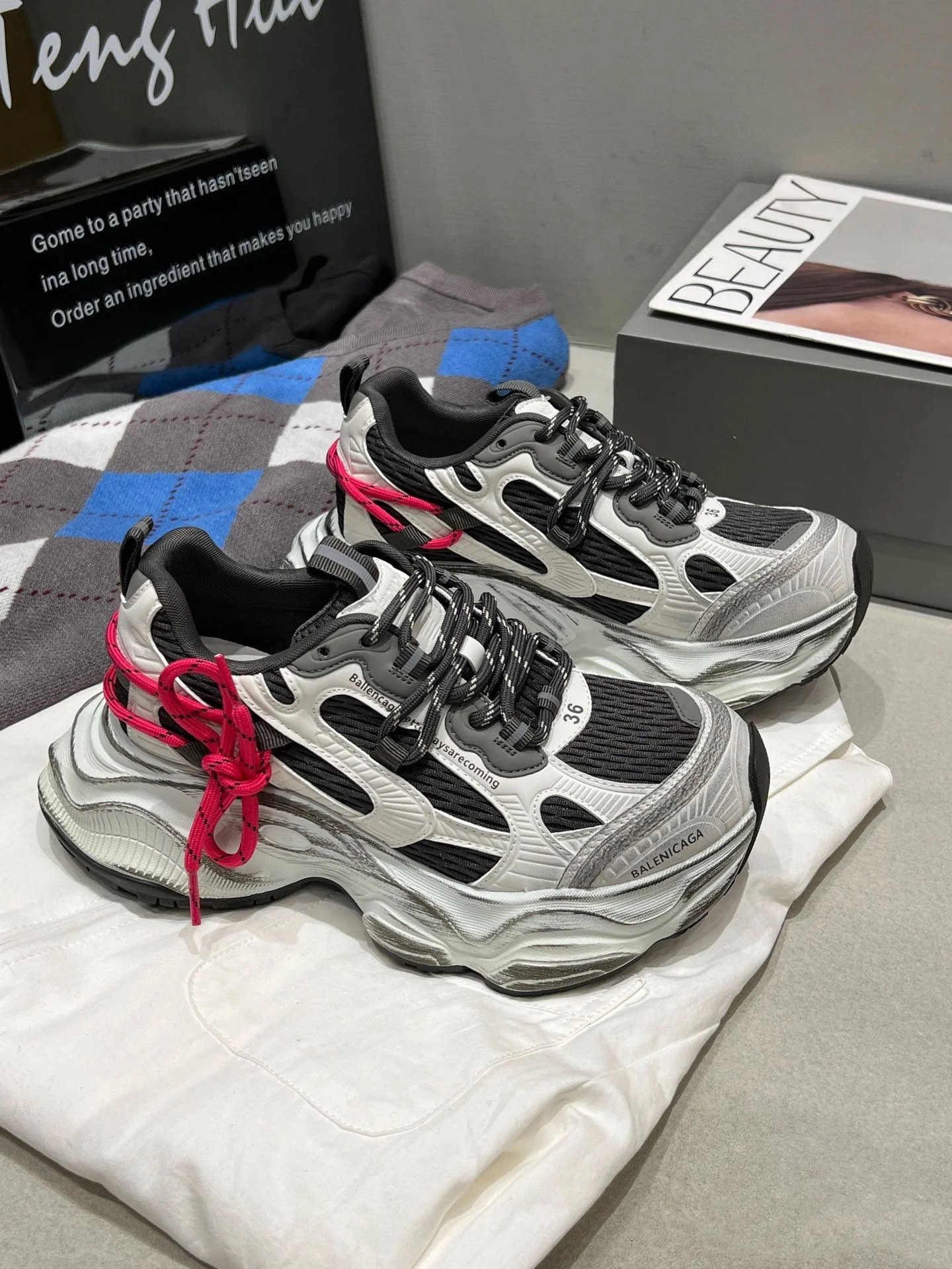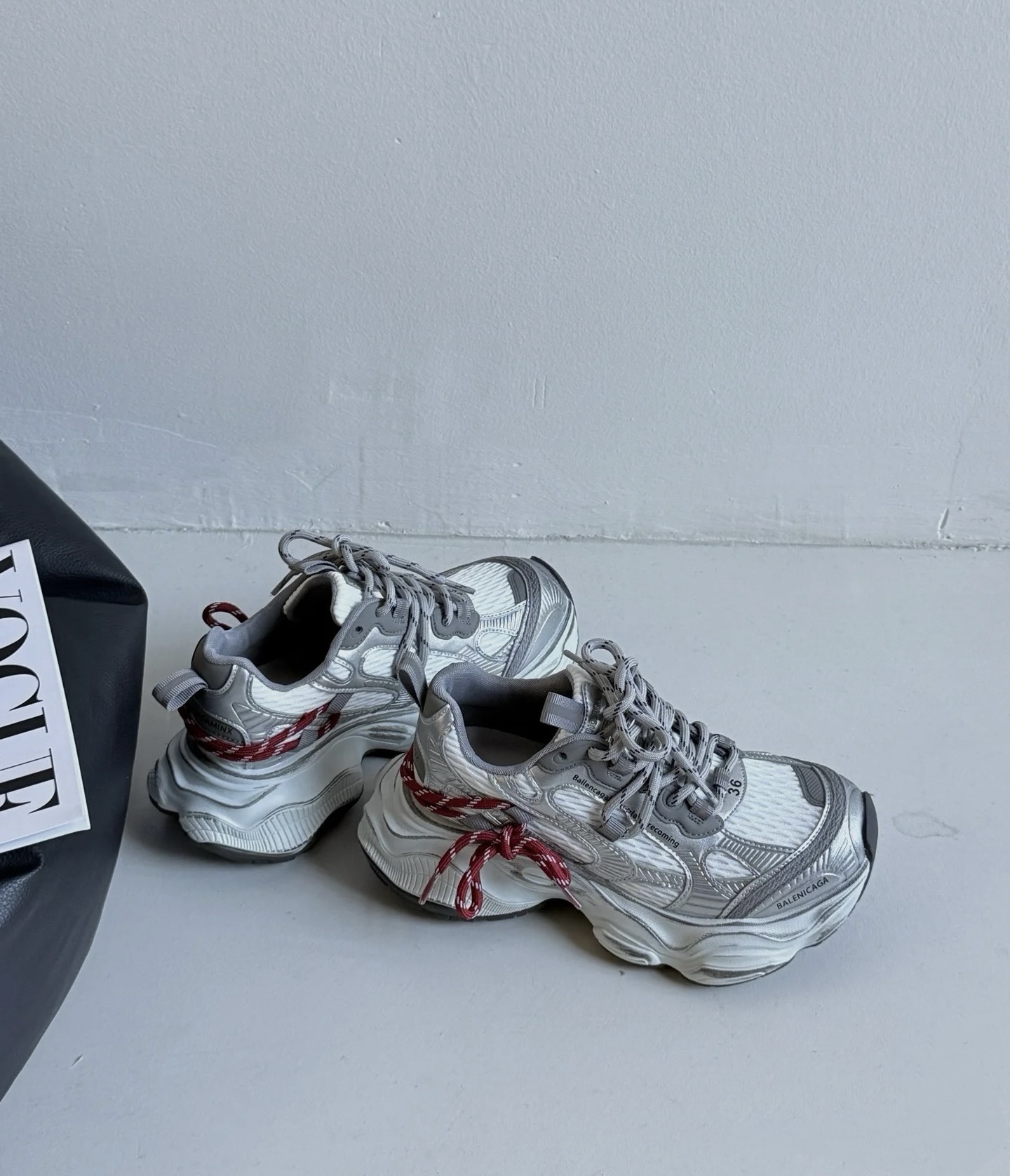 255 货号210766255 dx 2026年新款🔥心动红线双做旧老爹鞋也太顶了💥 真皮➕网,组合鞋底,底层为橡胶7cm。银灰做旧鞋身搭配玫红抽绳撞色,美式街头感直接拉满~流线型的鞋身设计超显脚小,厚底还能悄悄增高,踩上去软乎乎的巨舒服,搭运动裤、阔腿裤都超有范儿,春日穿搭的氛围感被它狠狠拿捏住啦