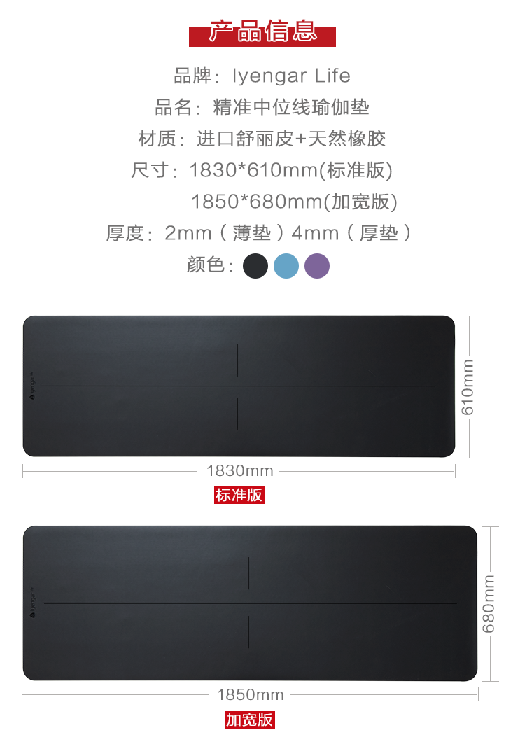 艾扬格 Life 橡胶 环保 中位线 瑜伽垫183*61cm