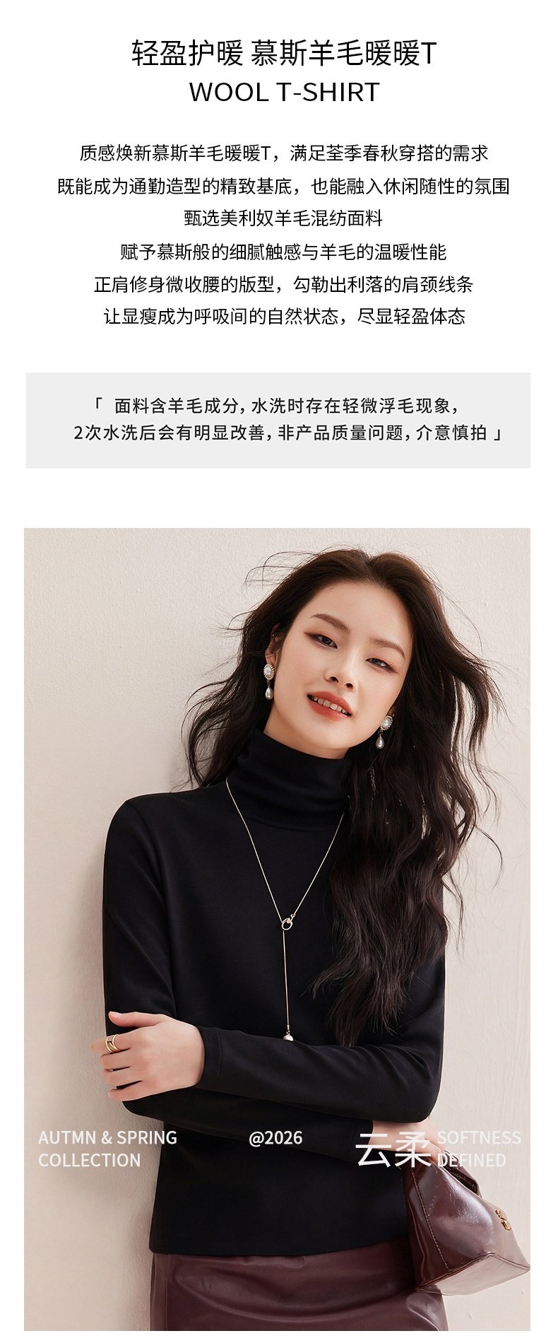 「自j」全新升级【铂金会员119/天猫159/差价40】(03208)洛诗琳美利奴精纺绵羊毛打底衫2026春季新款高领打底上衣