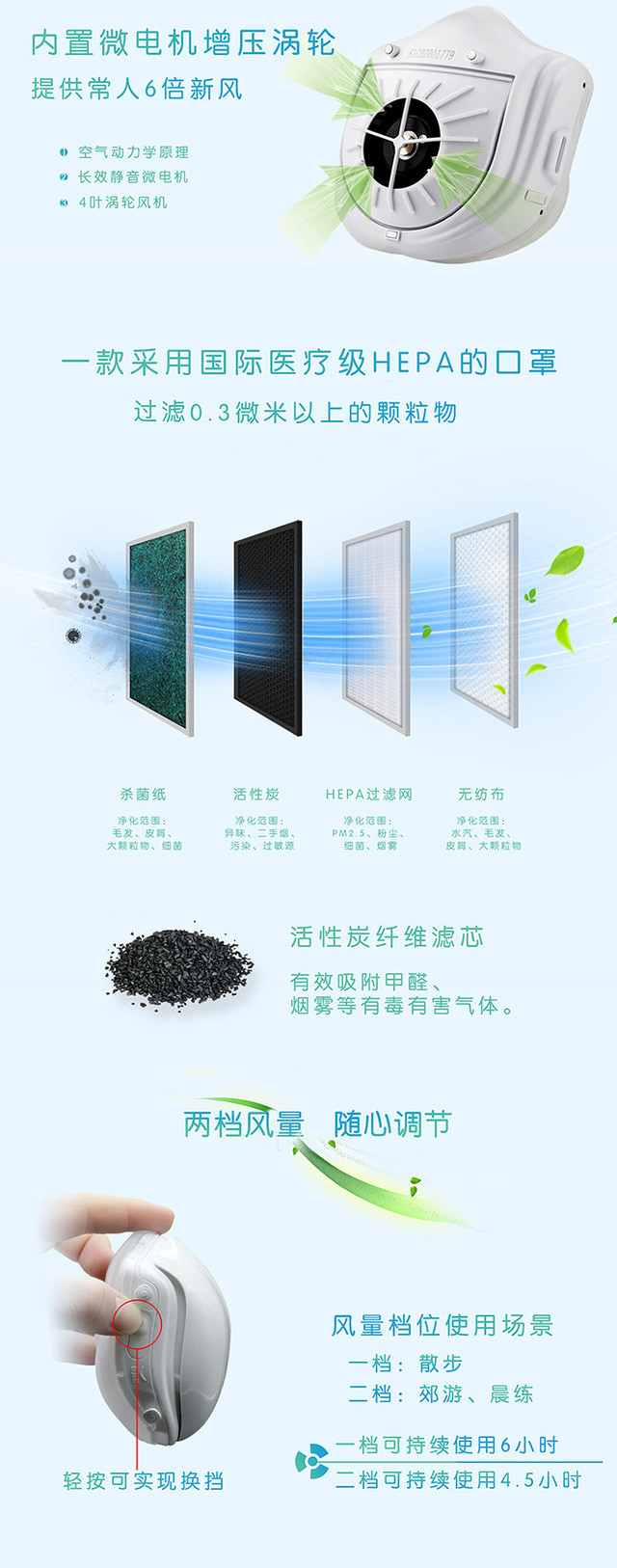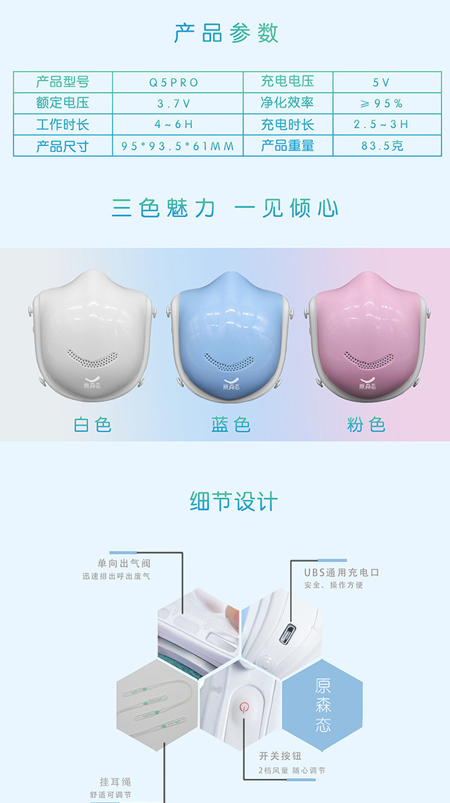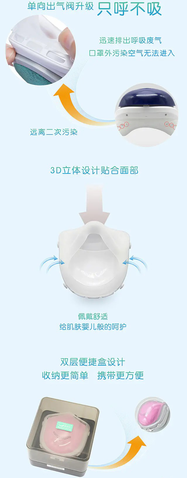 4.没有传统口罩的二次污染,不发臭,可以随时消毒清洗。