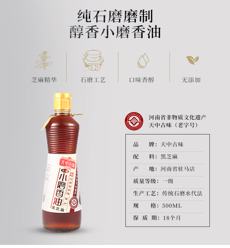 产品名称:天中古味黑芝麻香油