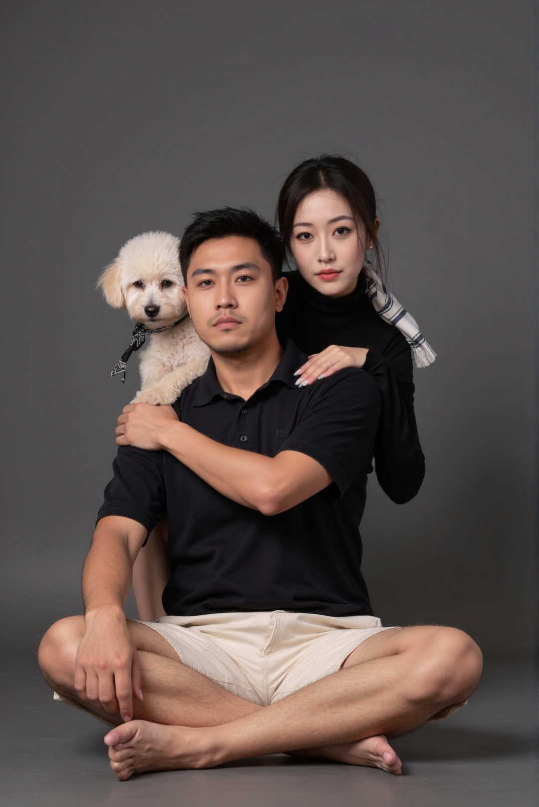 宠物全家福: 提供你本人,或和你爱人的正面照,跟你家宠物正面侧面照片。
