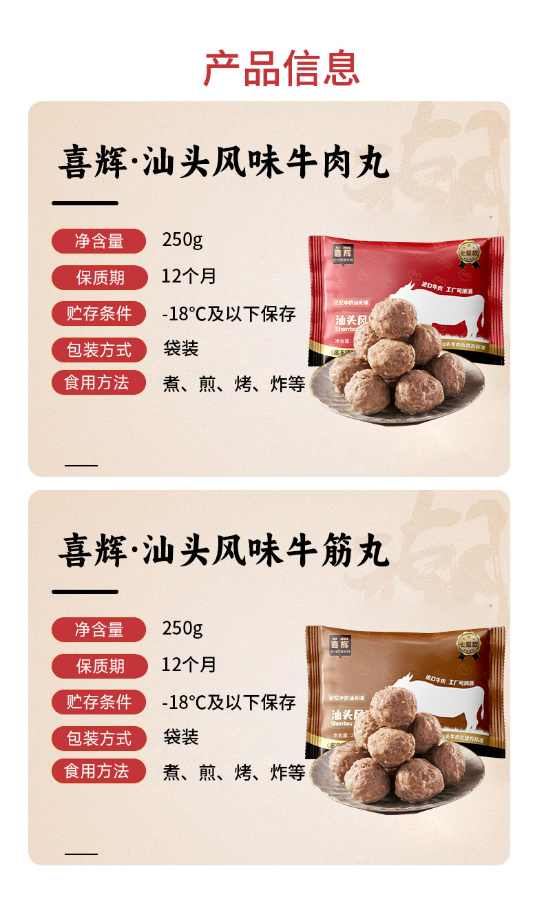 【陈小舒专属】喜辉汕头风味牛肉丸/牛筋丸 七星款新版 鲜香弹嫩甄选品质 Q弹爆汁火锅鲜美食材 家庭装250g/袋