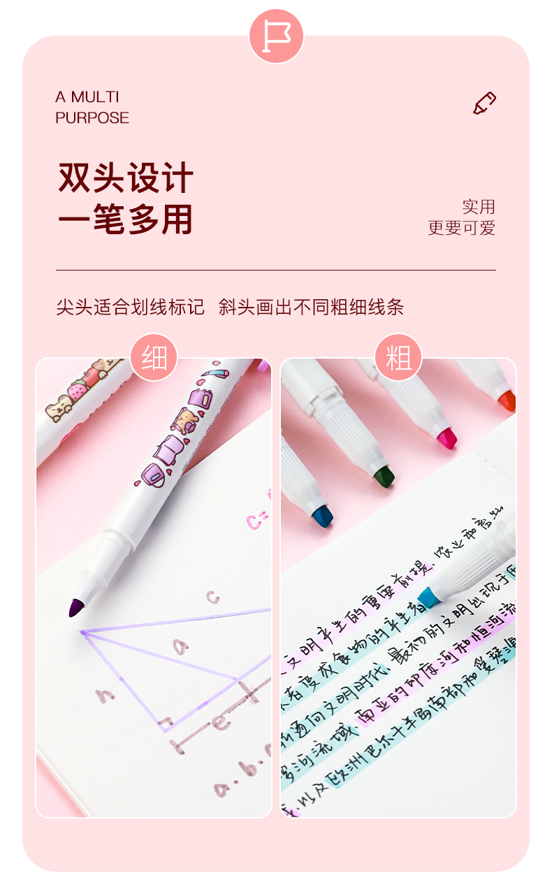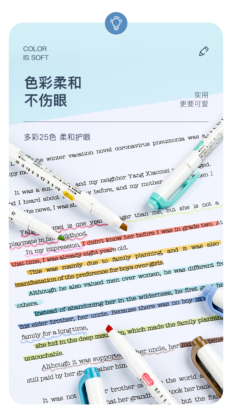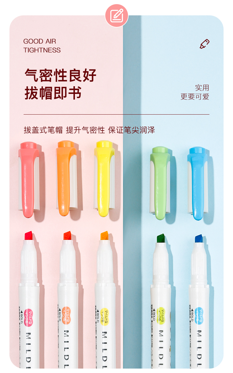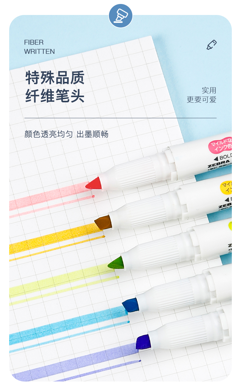 日本ZEBRA斑马笔荧光色笔WKT7淡色双头标记笔学生用手帐文具记号做笔记彩色的笔划重点套装荧光笔