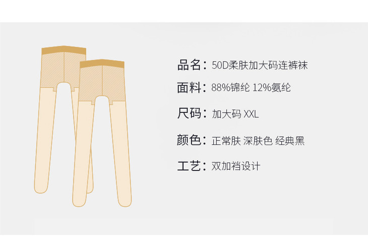 3·Z·U/足装秀加肥加大码丝袜女159斤50D柔肤胖mm连裤袜72375-3