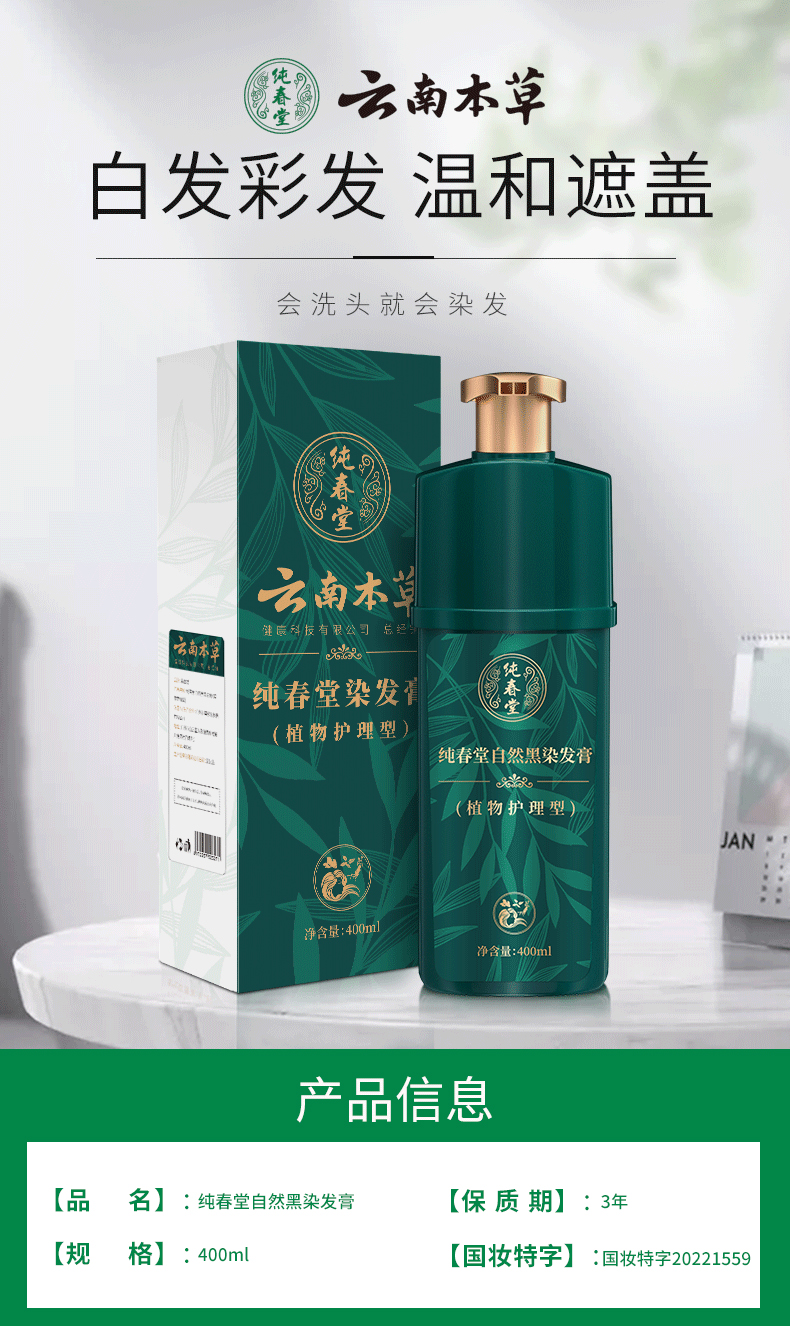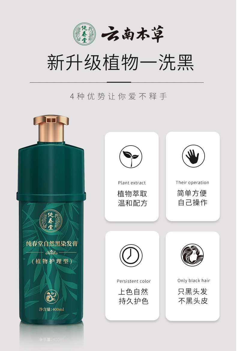 【洗发=染发】纯春堂云南本草汉斯黑色染发膏染发剂一洗黑升级洗发水彩色染发膏