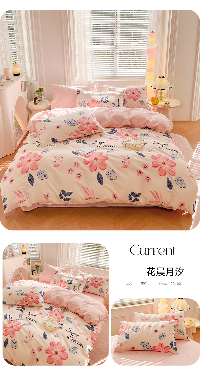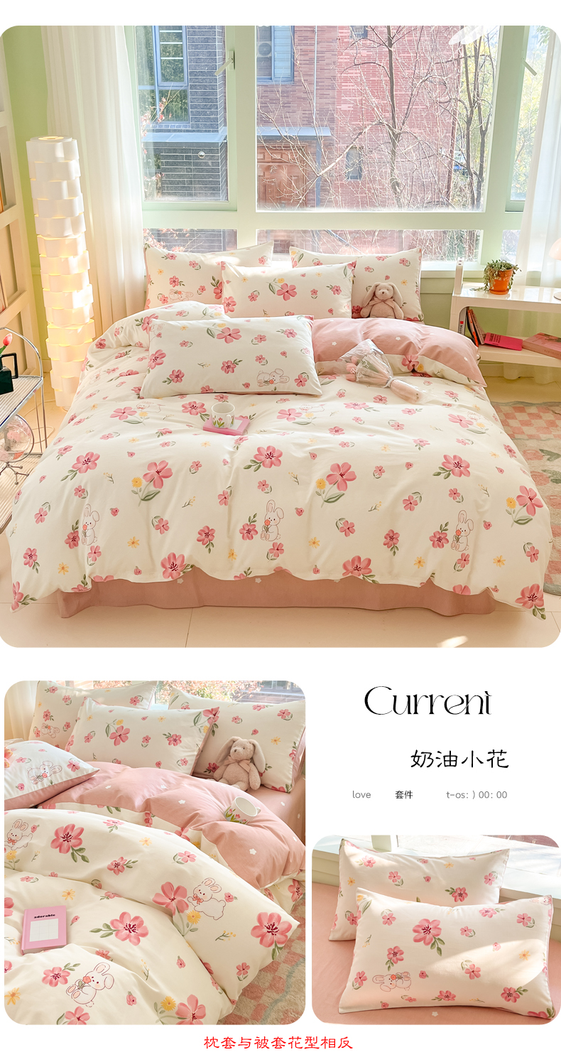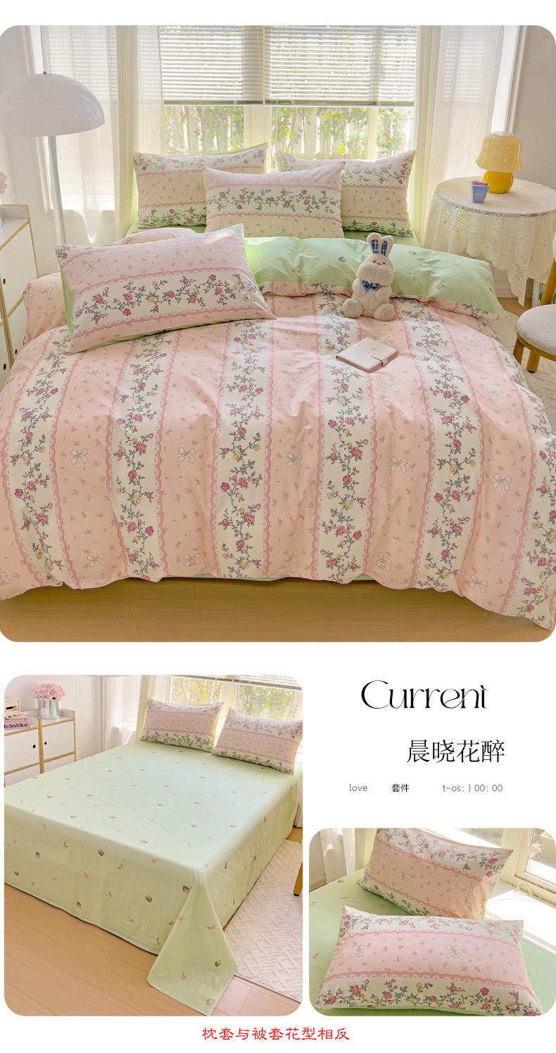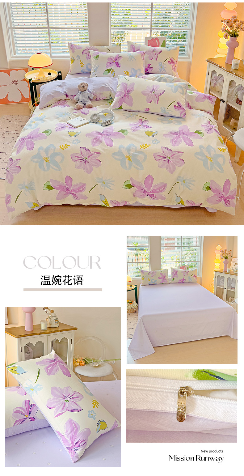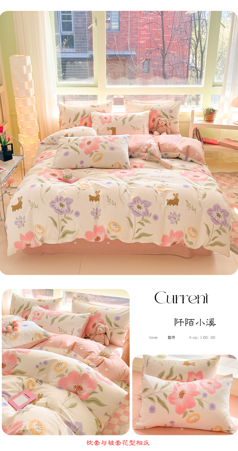 纯棉床上四件套 全棉公主花被套床单宿舍床品三件套