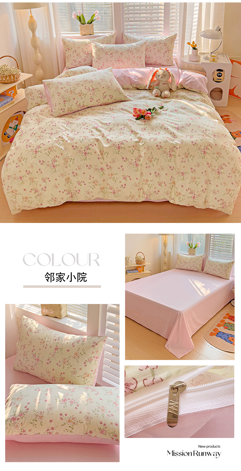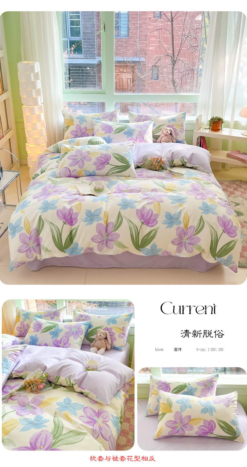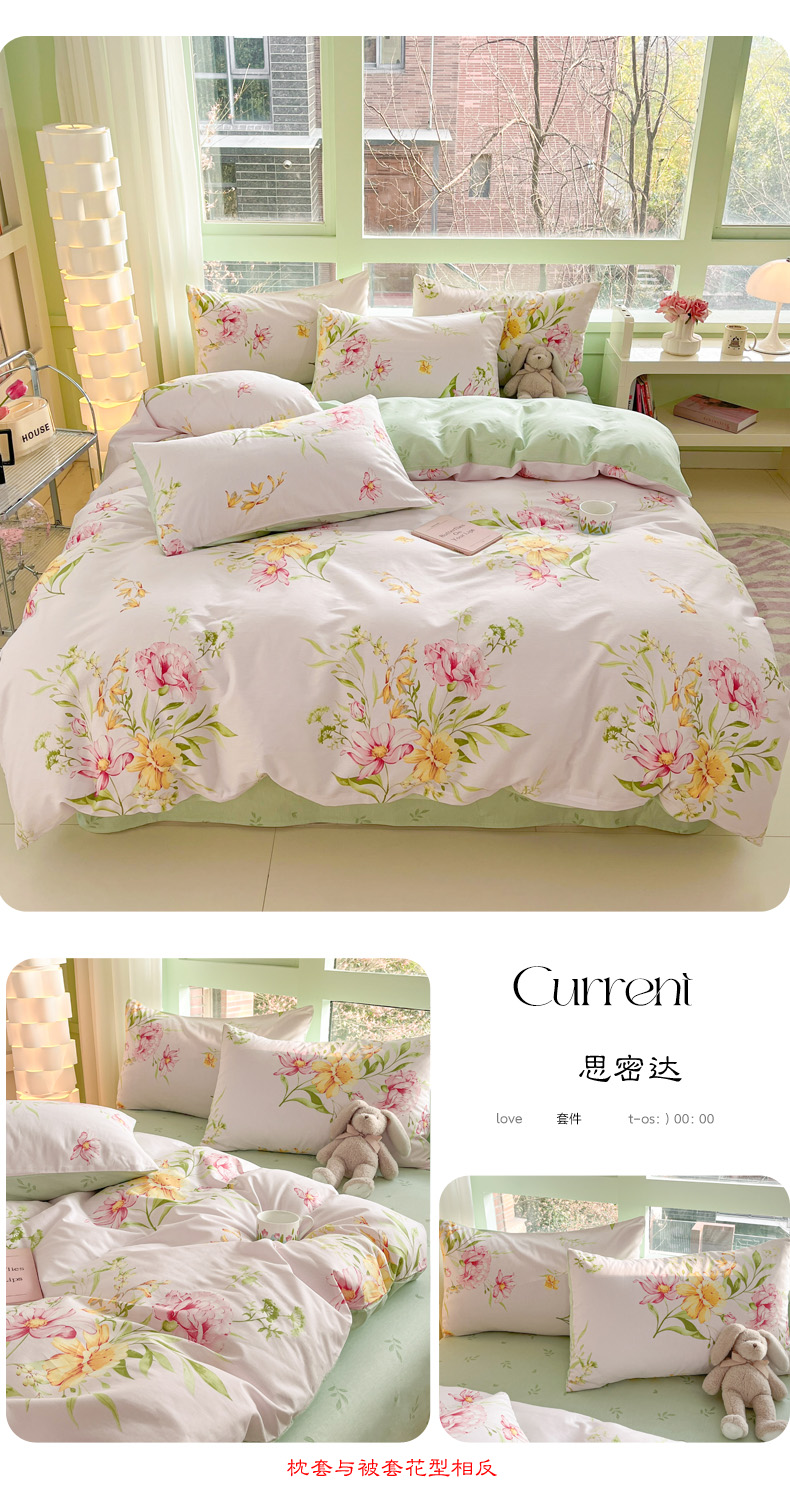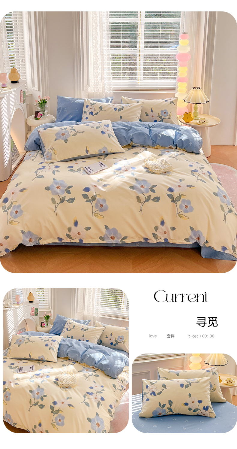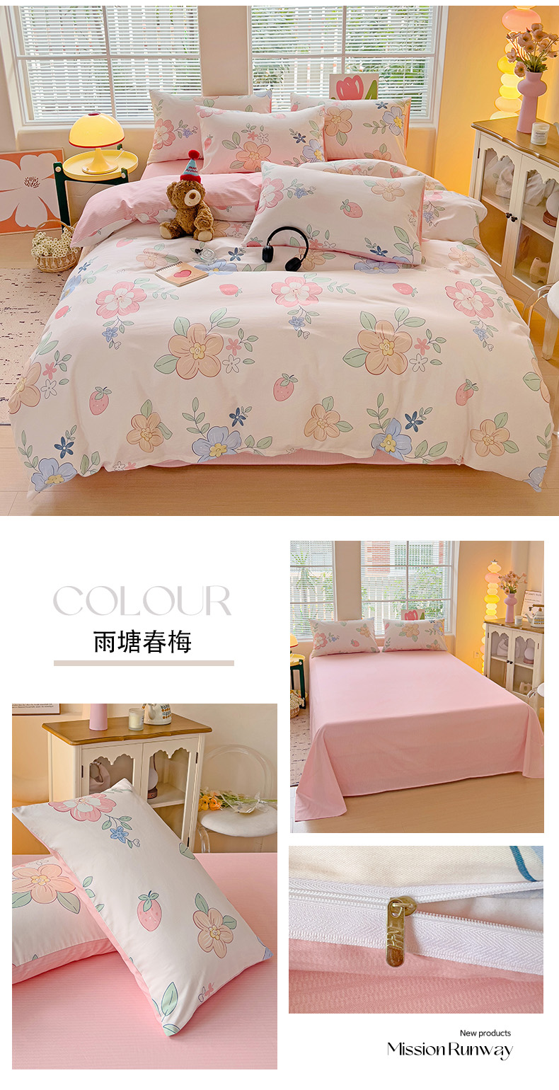 纯棉床上四件套 全棉公主花被套床单宿舍床品三件套