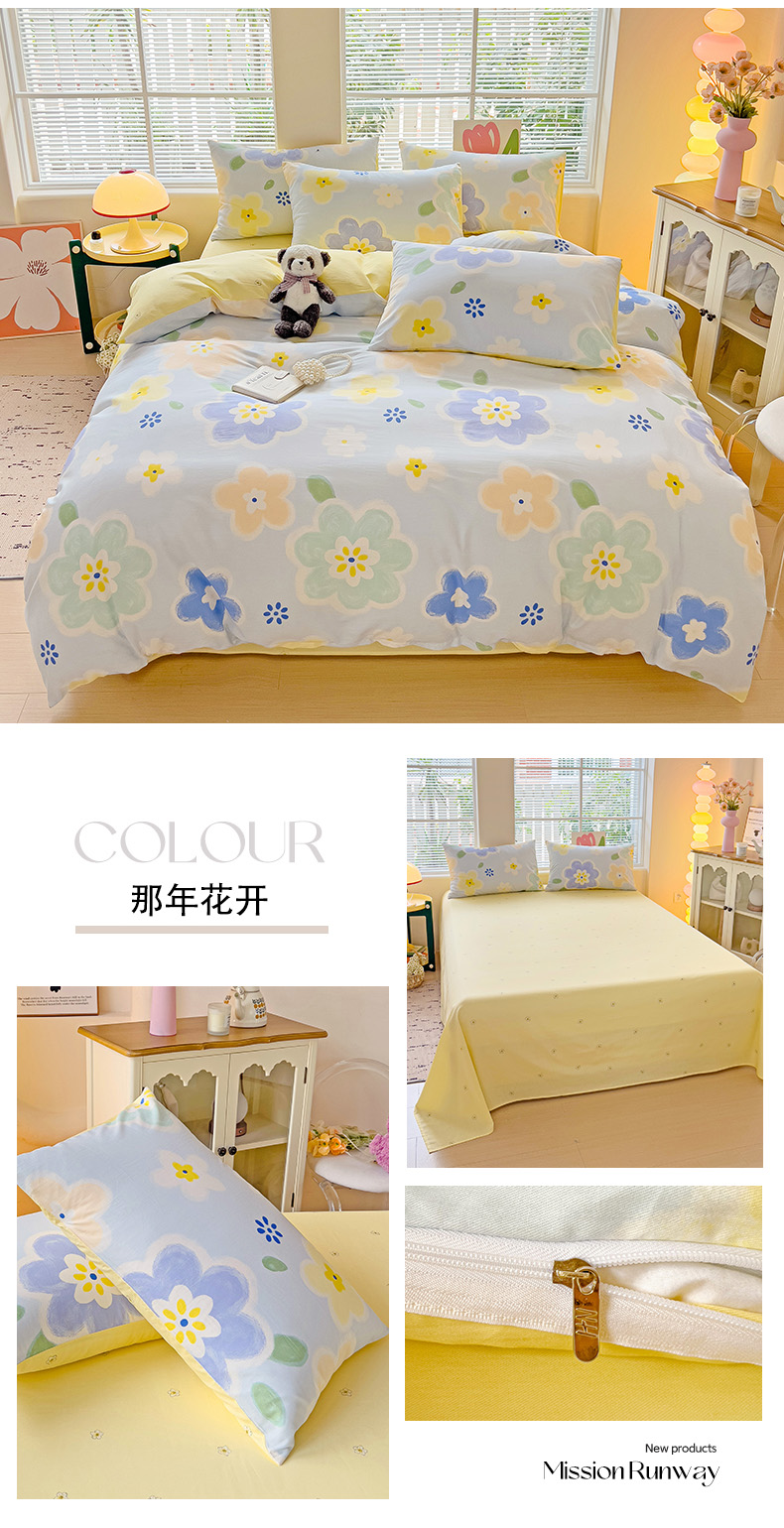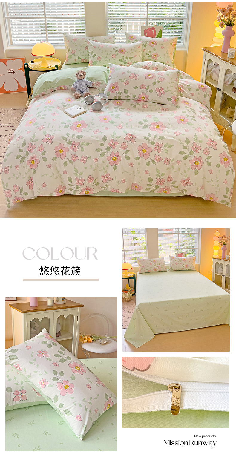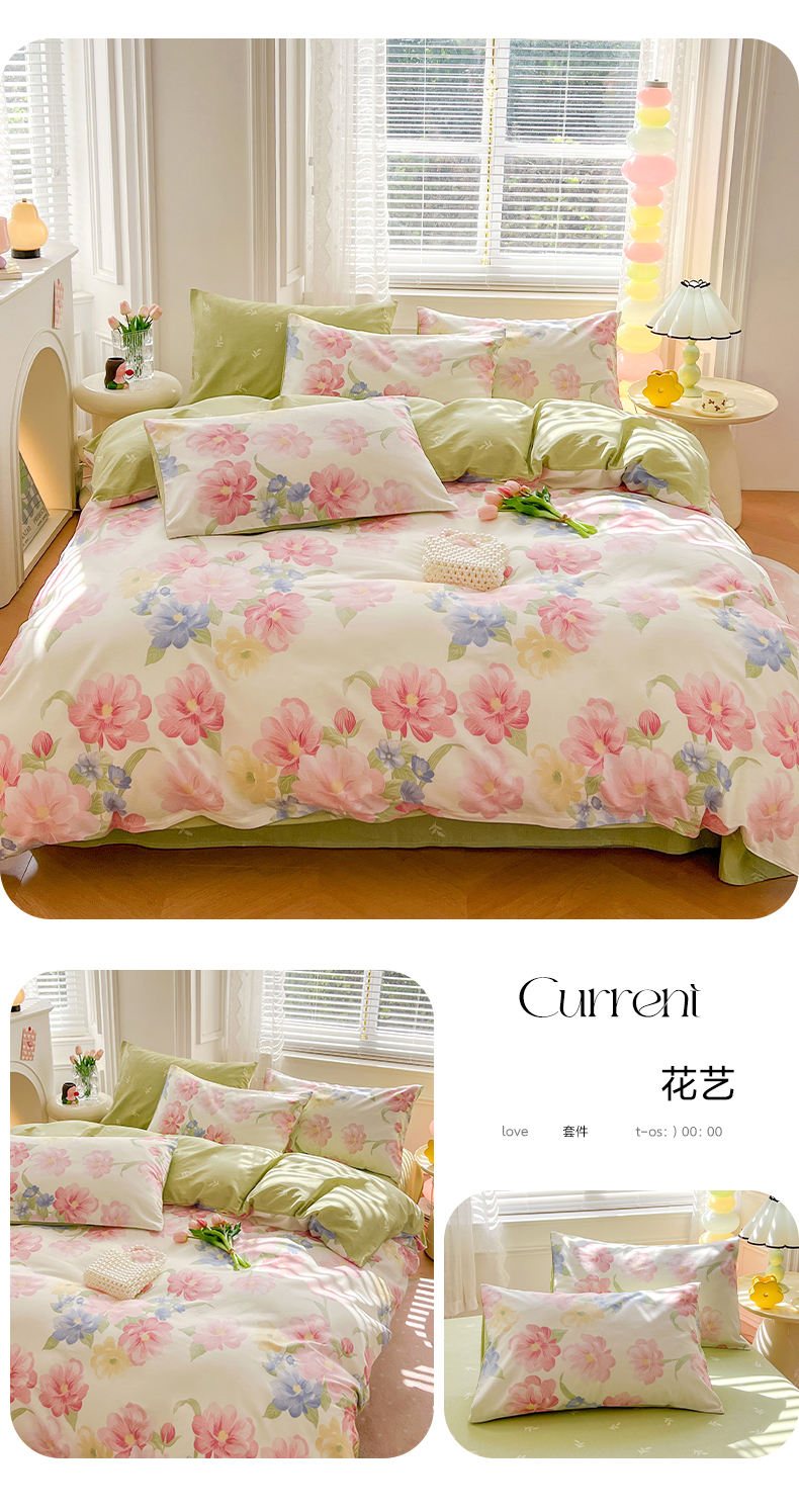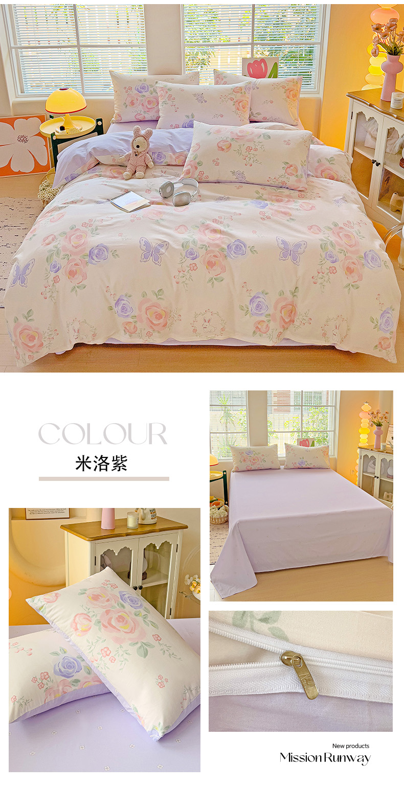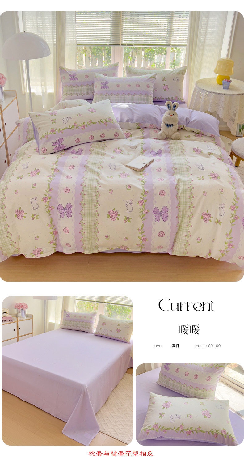 纯棉床上四件套 全棉公主花被套床单宿舍床品三件套