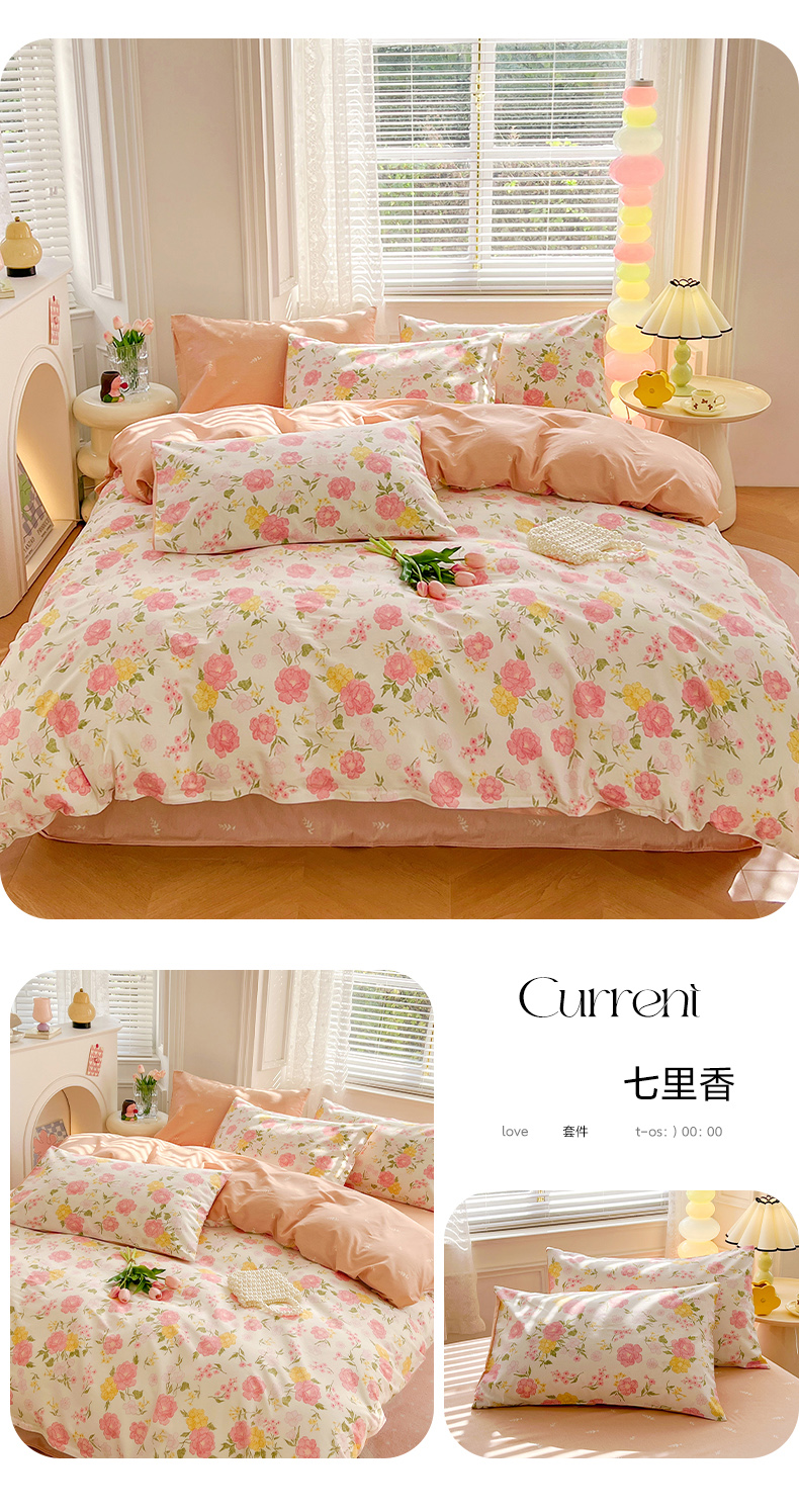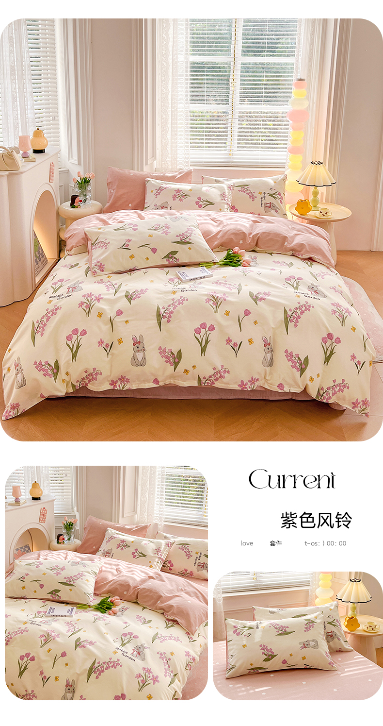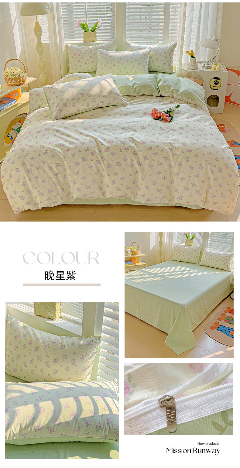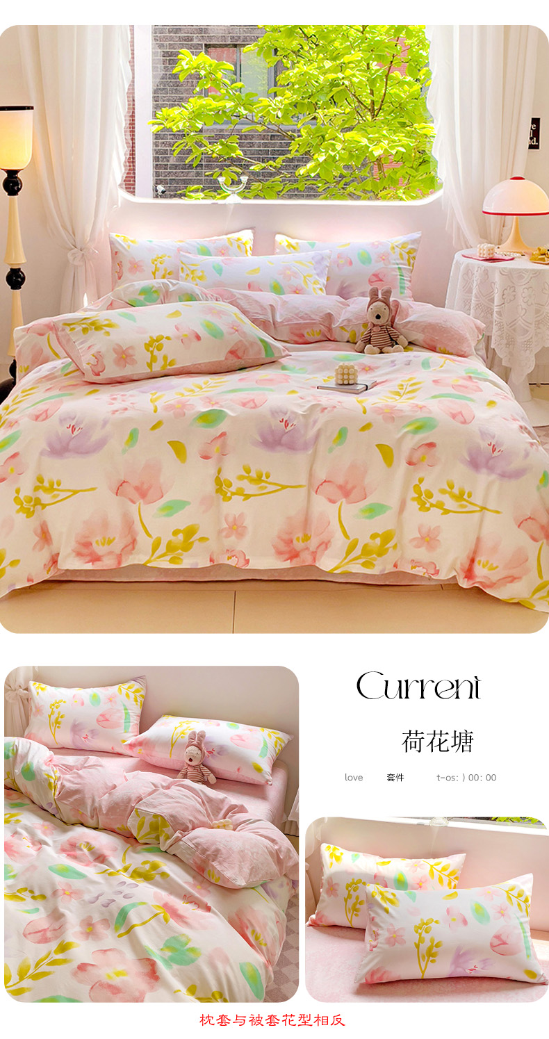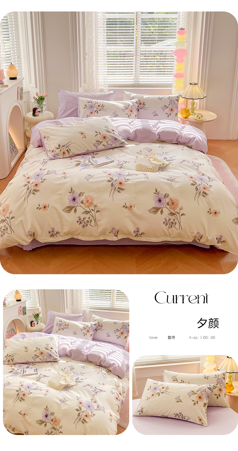 纯棉床上四件套 全棉公主花被套床单宿舍床品三件套