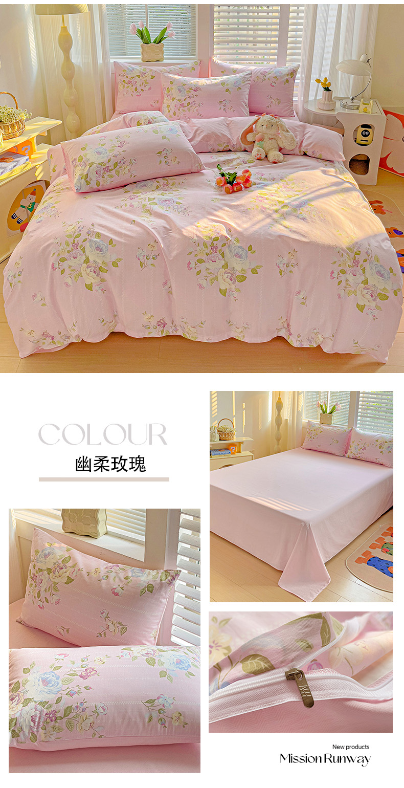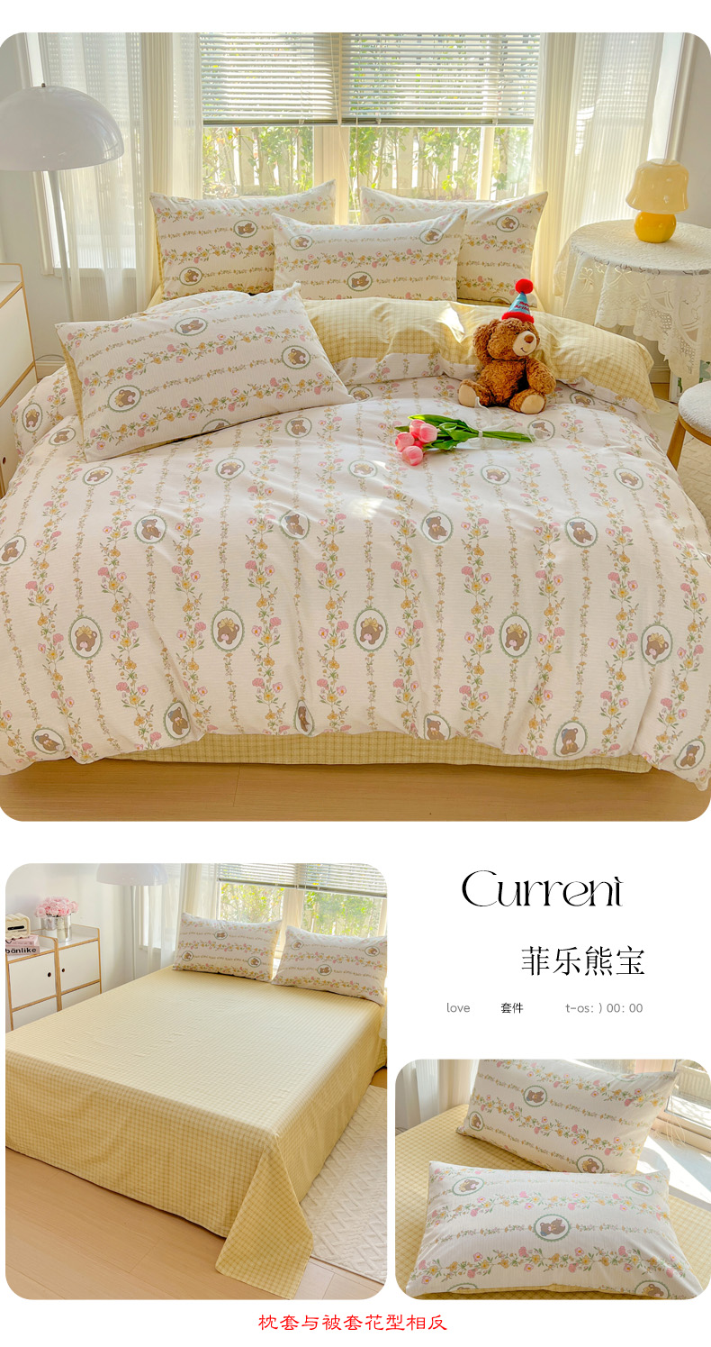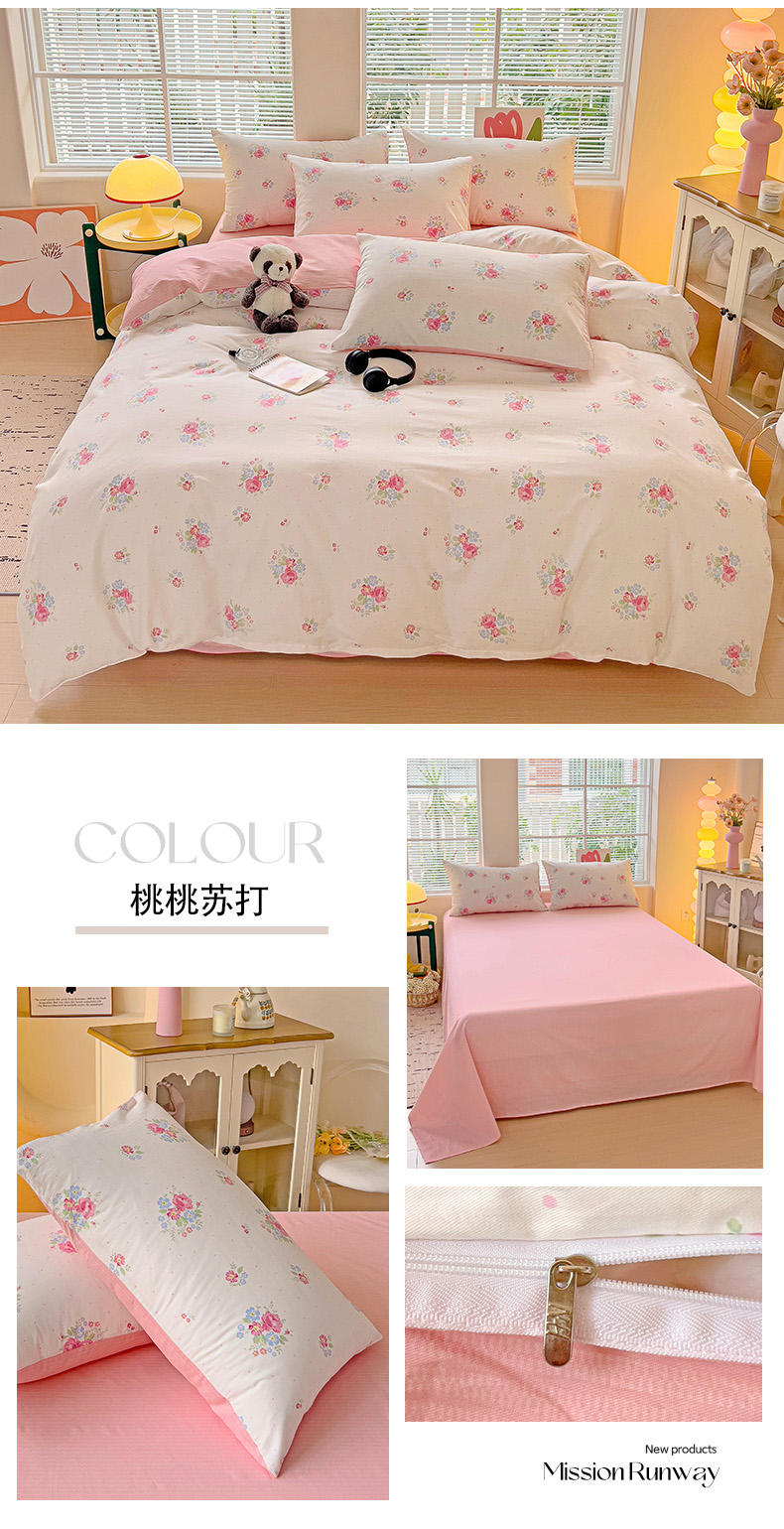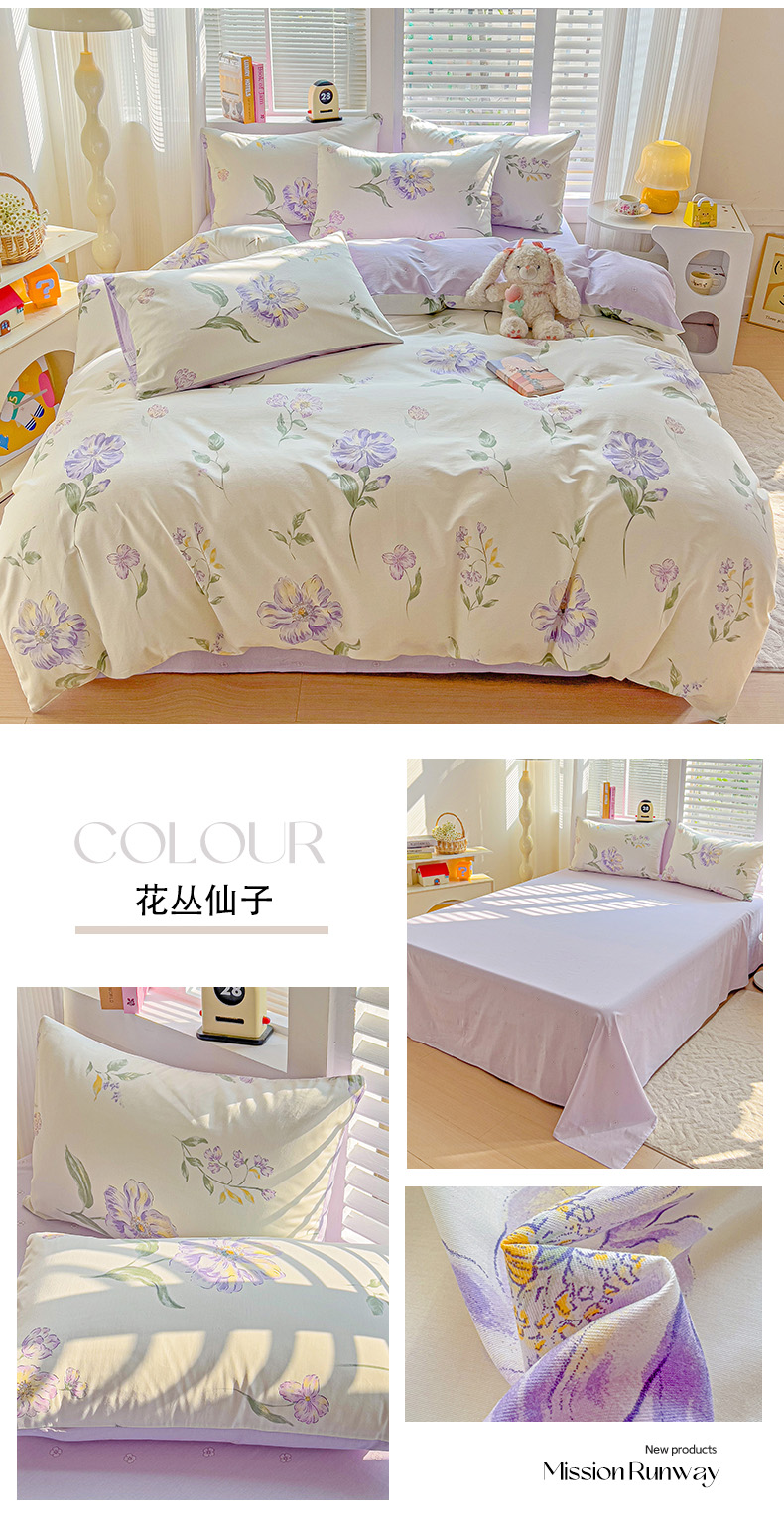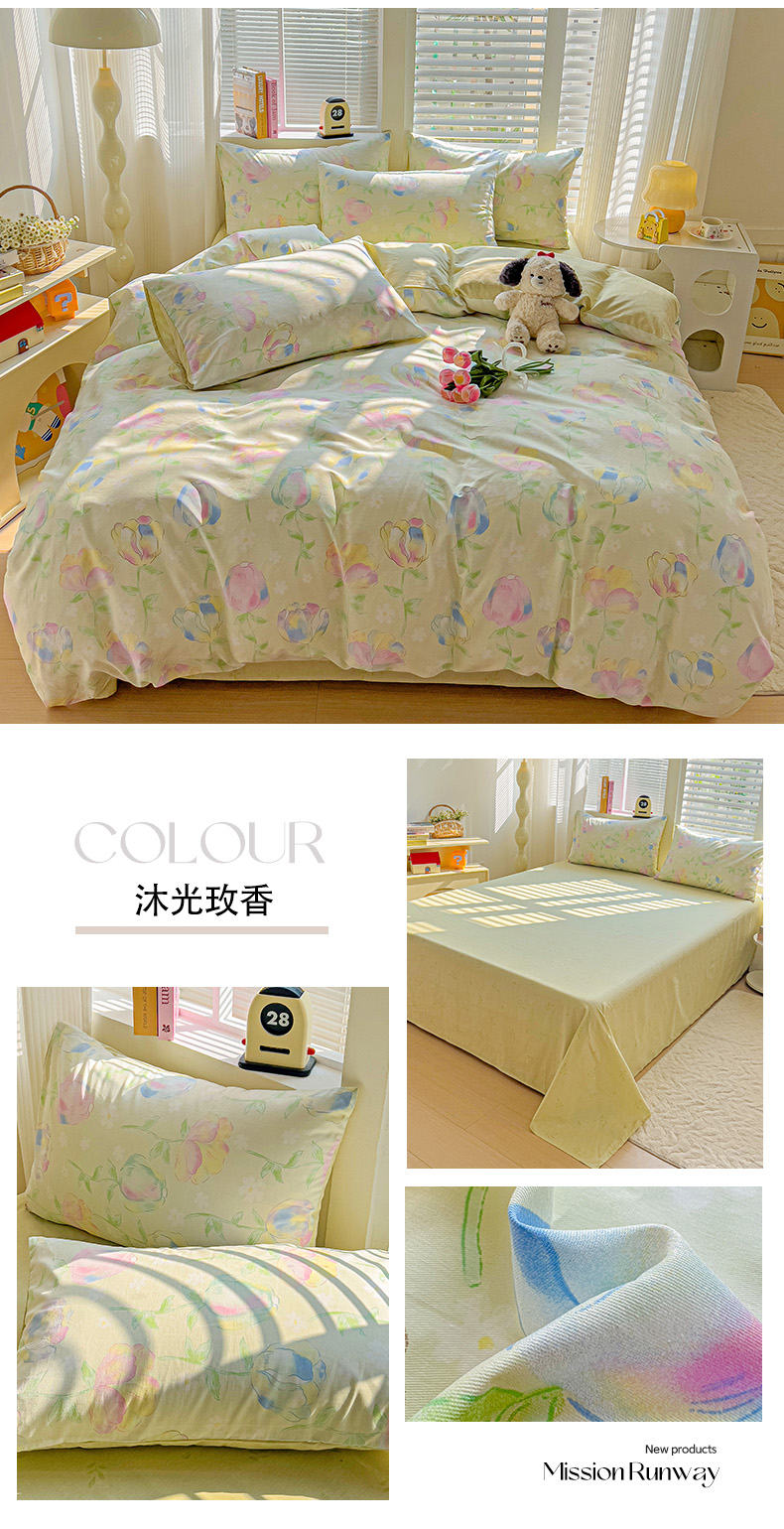 纯棉床上四件套 全棉公主花被套床单宿舍床品三件套