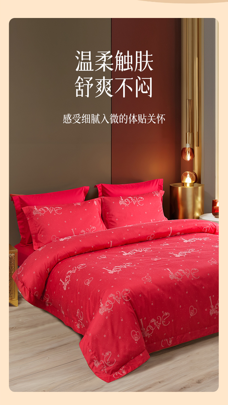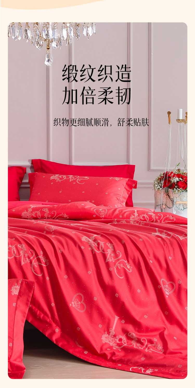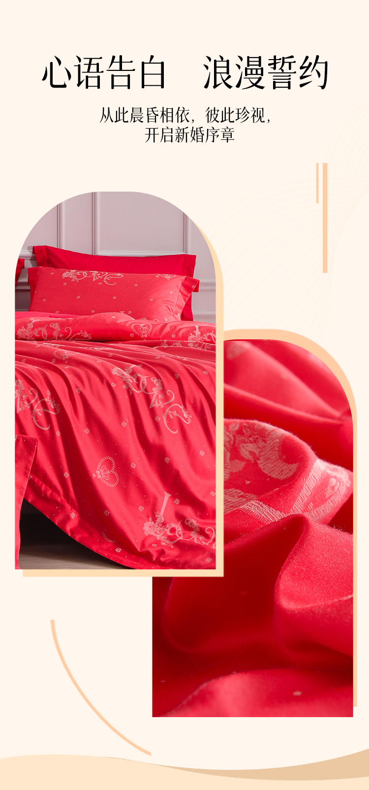 2025年春夏新款雅芳婷浪漫婚庆床笠五件套新中式刺绣被套50支套件
