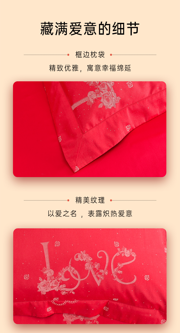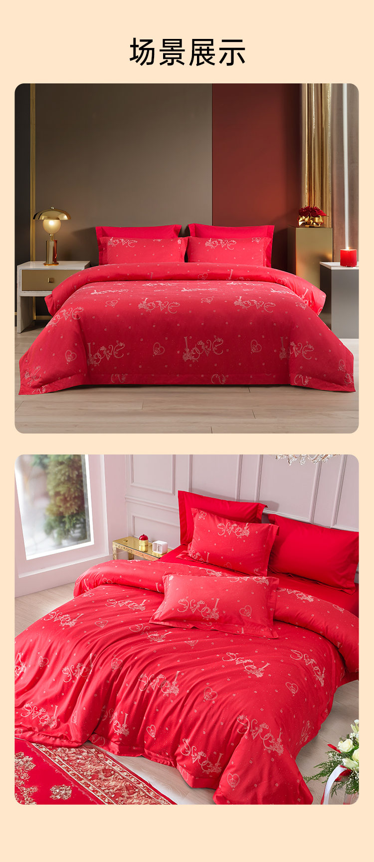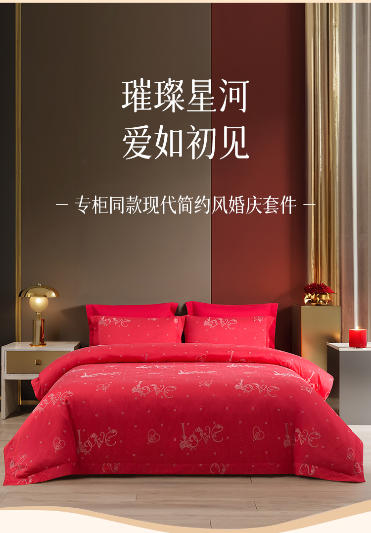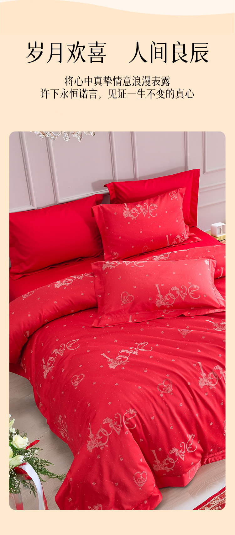 2025年春夏新款雅芳婷浪漫婚庆床笠五件套新中式刺绣被套50支套件