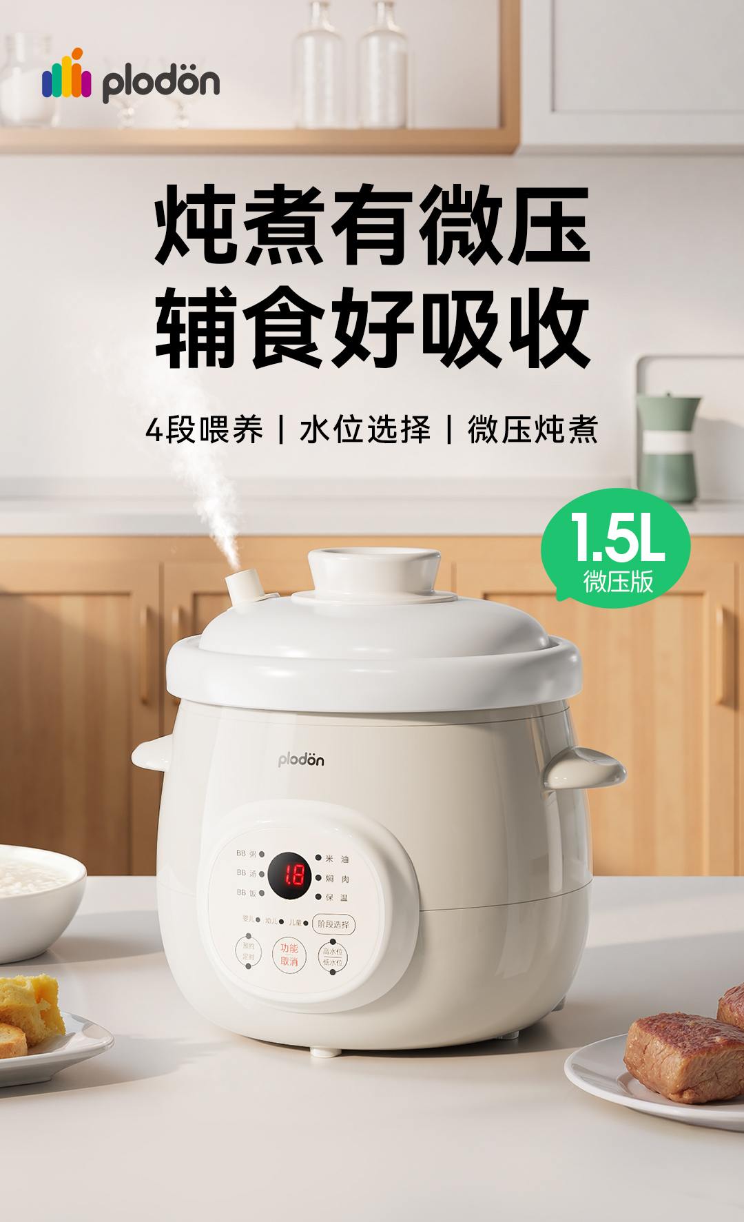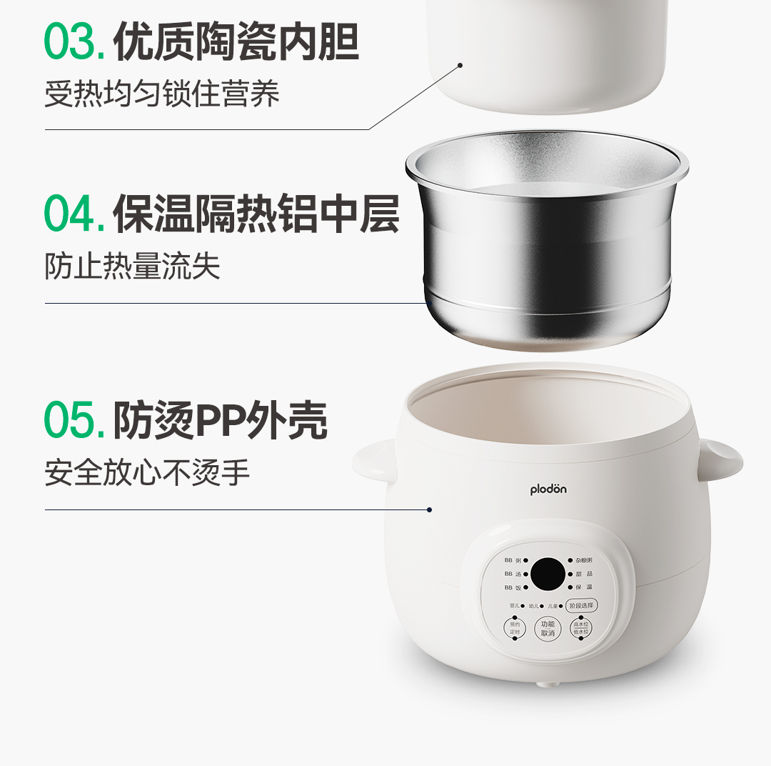 浦利顿婴儿微压炖锅四阶段BB煲熬米油神器宝宝专用辅食锅DGD15-15MD