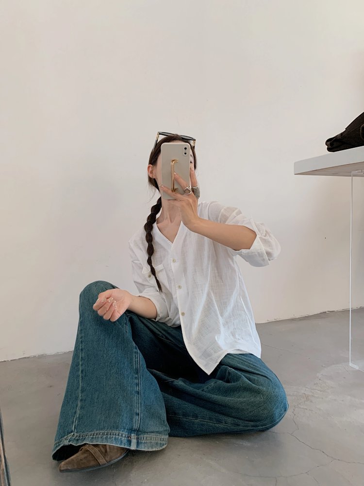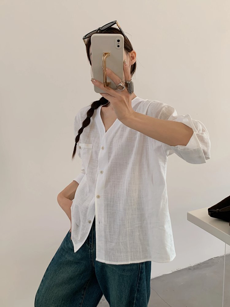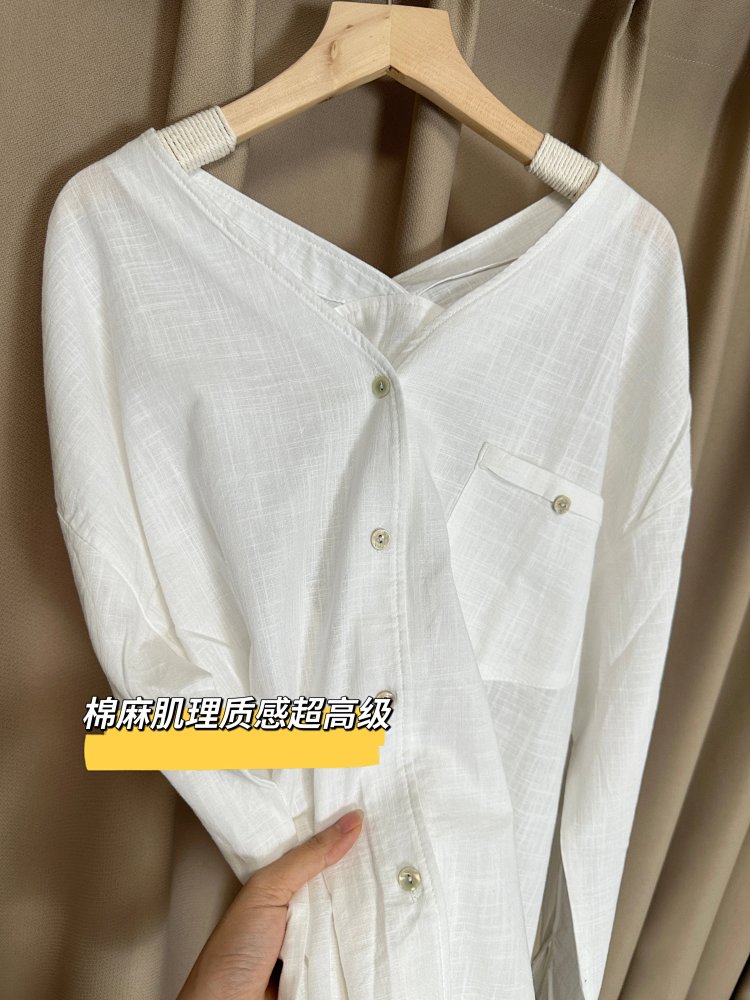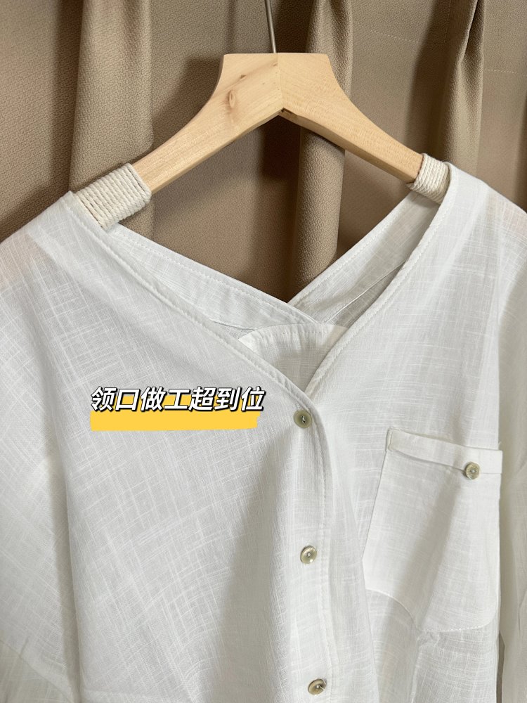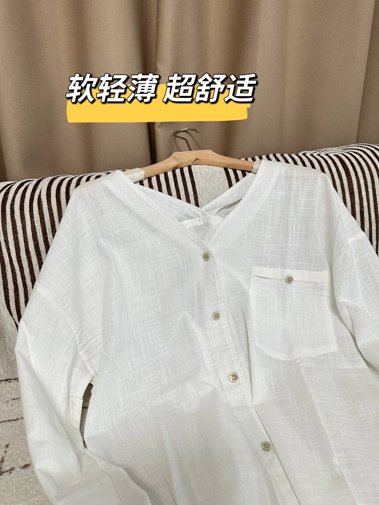 法式慵懒 V 领棉麻衬衫🌿 面料舒适亲肤透气~ 简约休闲随性搭 松弛感拉满✨