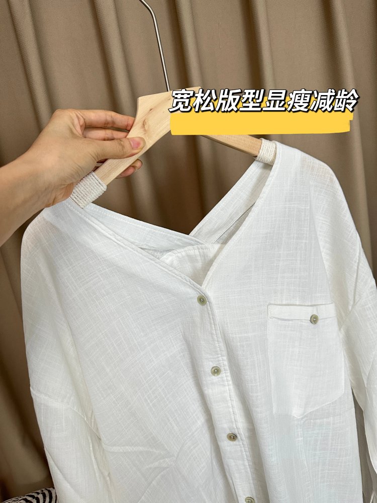 不看后悔系列‼️换季必备~自带法式气质的V领棉麻长袖衬衫‼️简约高级一眼就爱上😍到手品质200+😎现货现货现货,速冲‼️