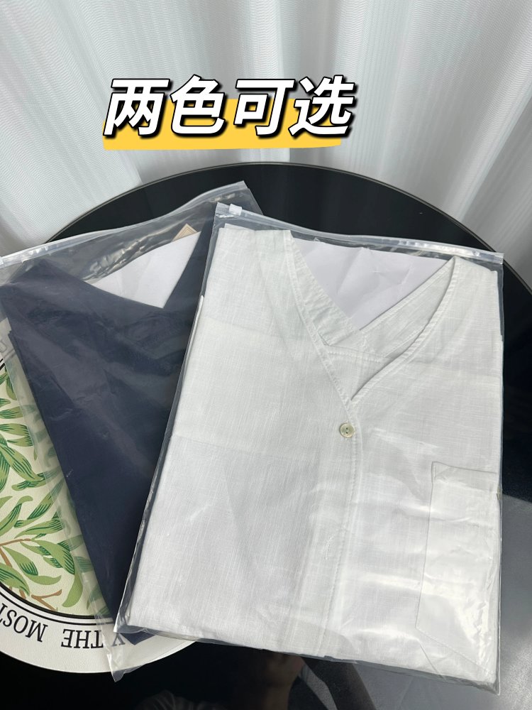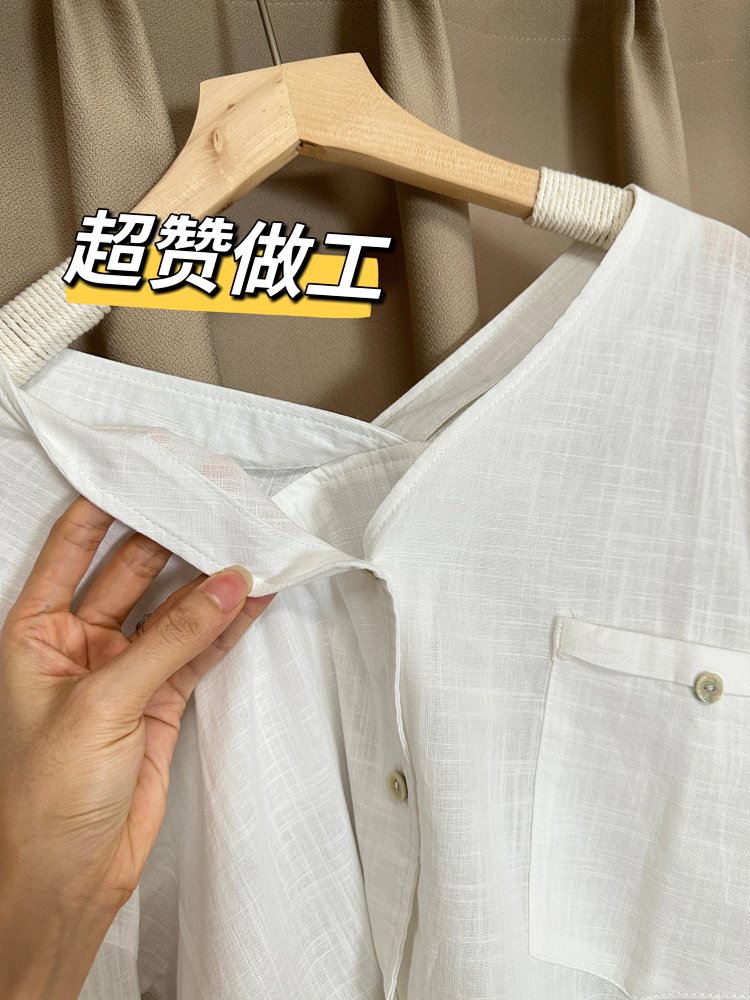 品名:简约休闲V领棉麻衬衫