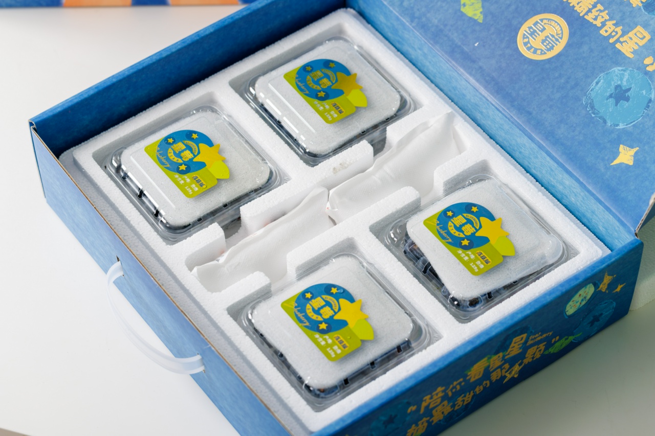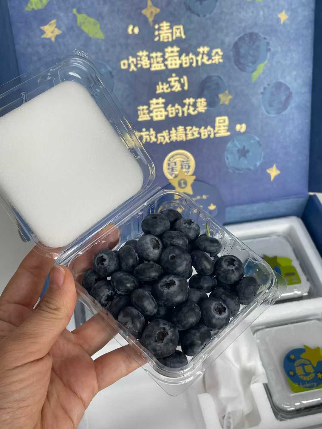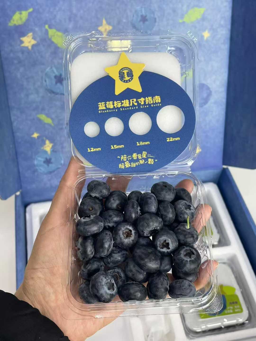 同时对蓝莓来说,最大的挑战是温度!采摘下来的蓝莓对温度十分敏感,采摘时必须戴好手套。随后分装送去低温车间进行打包,全程冷链运输,每一步都是和时间赛跑,只有经过层层筛选的蓝莓才能成为“星莓”。