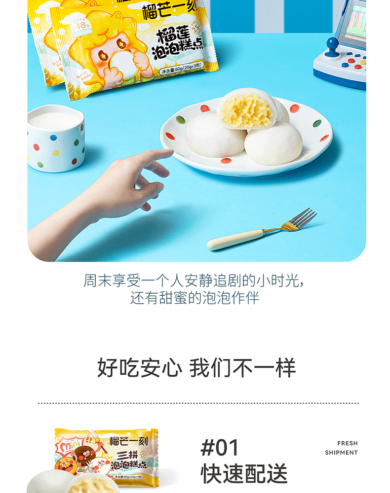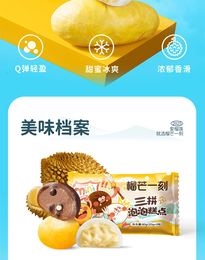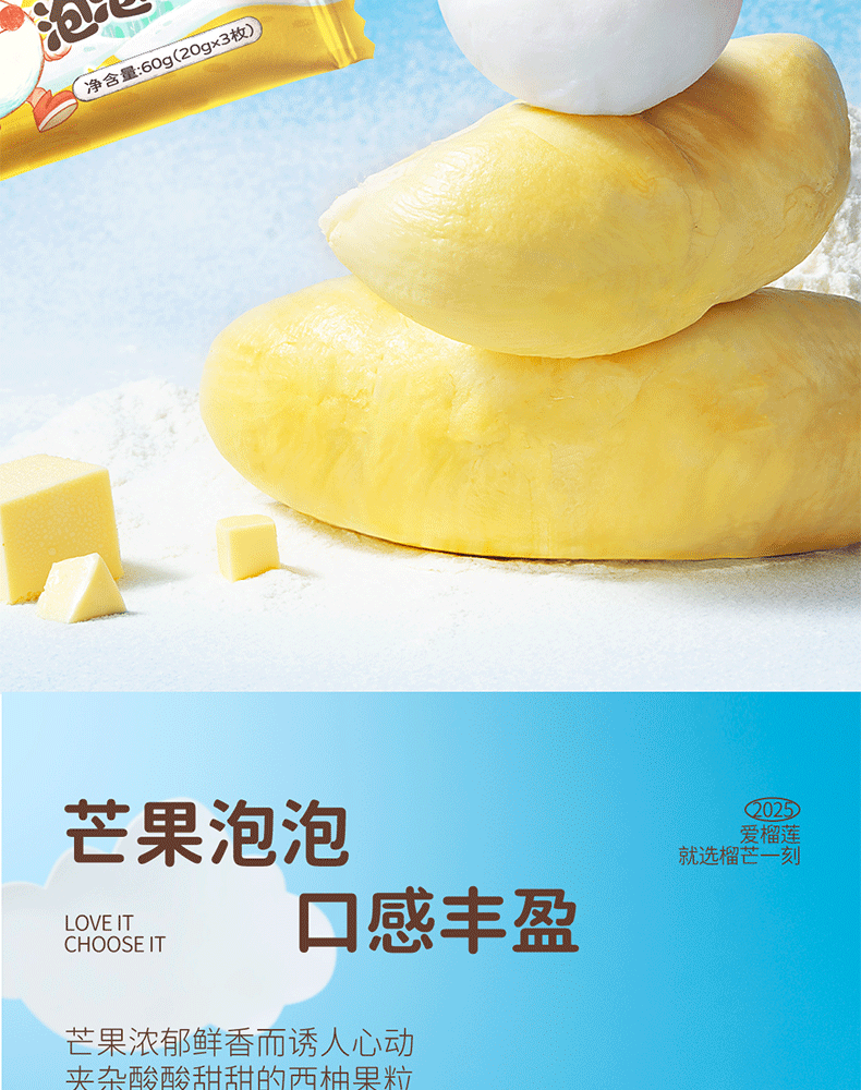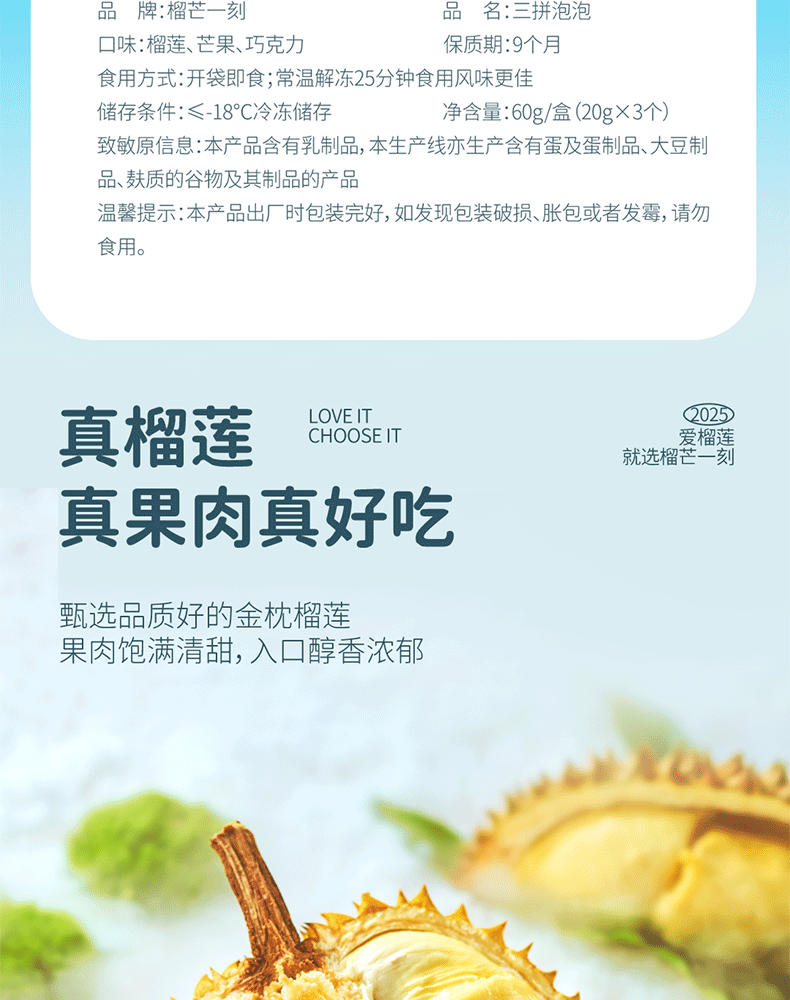 【榴芒一刻】榴莲泡泡60克(20g*3)/三拼(榴莲+巧克力+芒果)泡泡60克(20g*3)