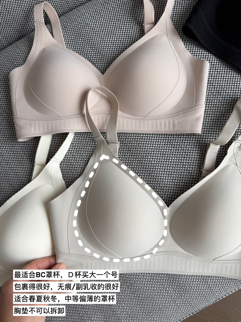 它的双重提拉设计真的不是吹的,完全能够适应各种胸型。不论你是大胸小胸,它都能让你在一天之中都感到胸部的紧致和上提感。*无钢圈固定杯设计**科学受力 稳固支撑服帖稳固,上托聚拢胸型。*加宽侧翼* 它的设计能让整个胸部都得到稳固的支撑,同时也增加了整体的内衣质感。
