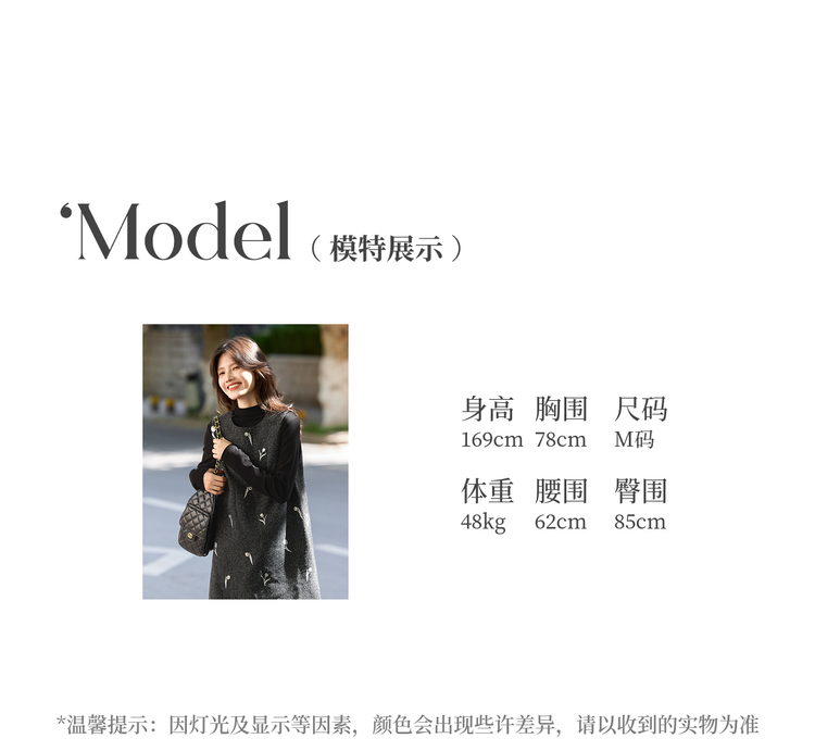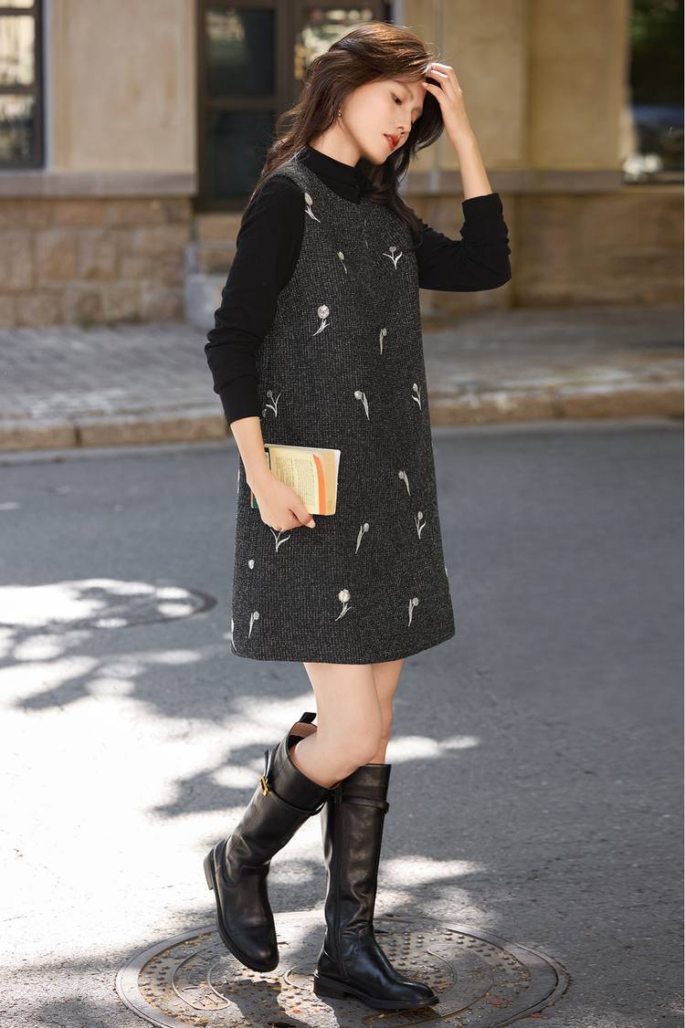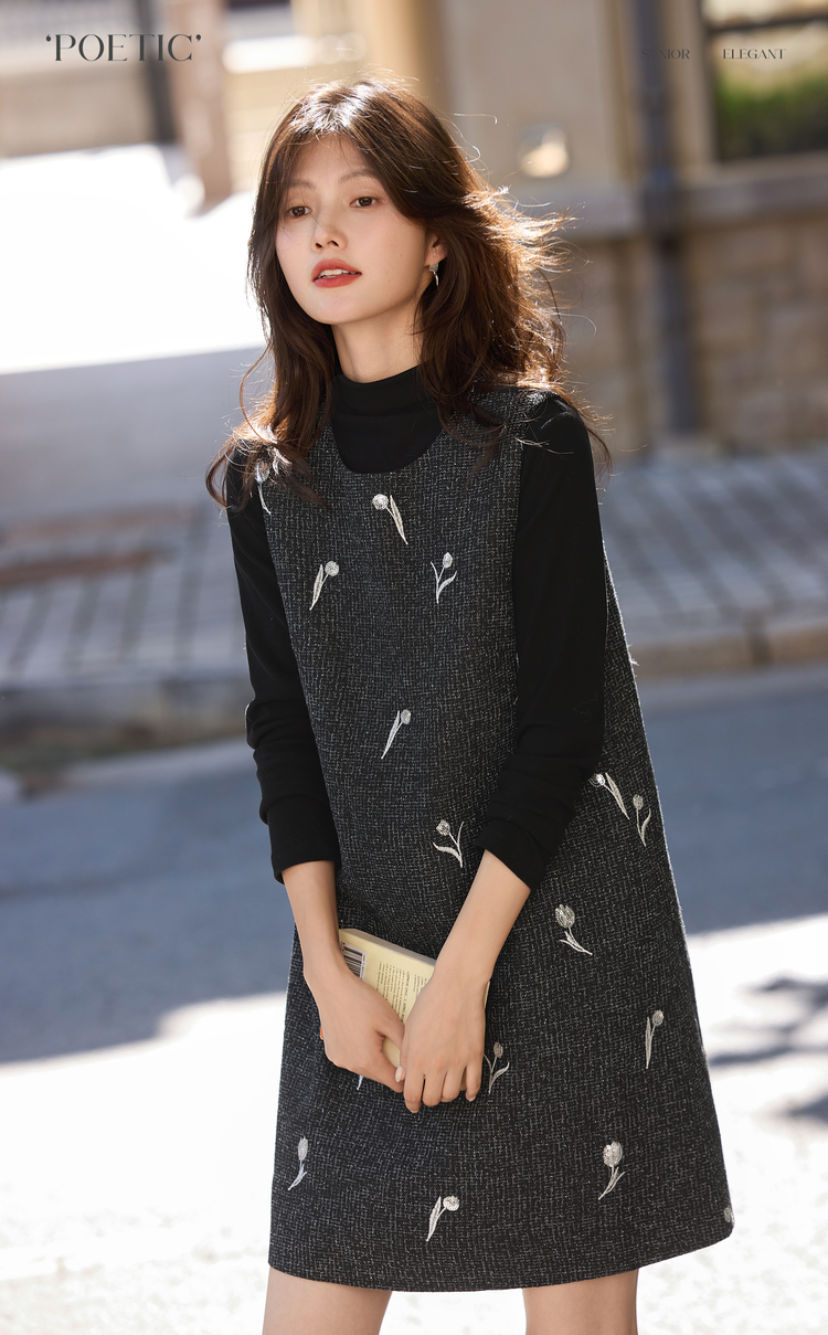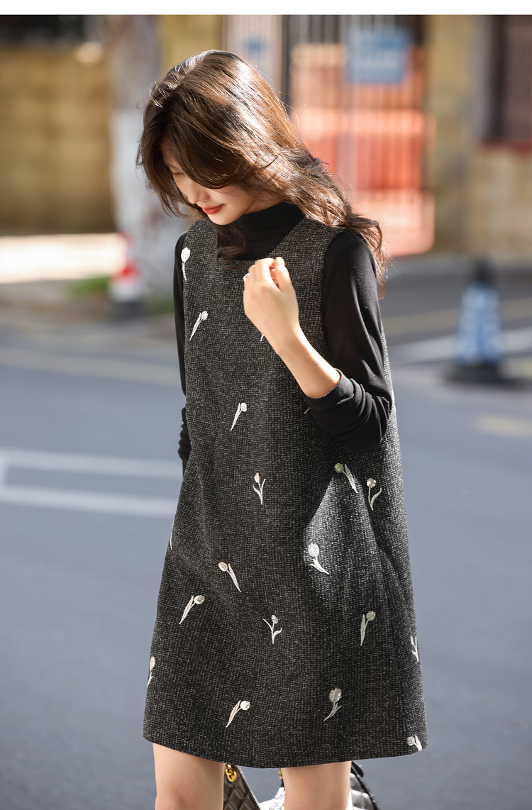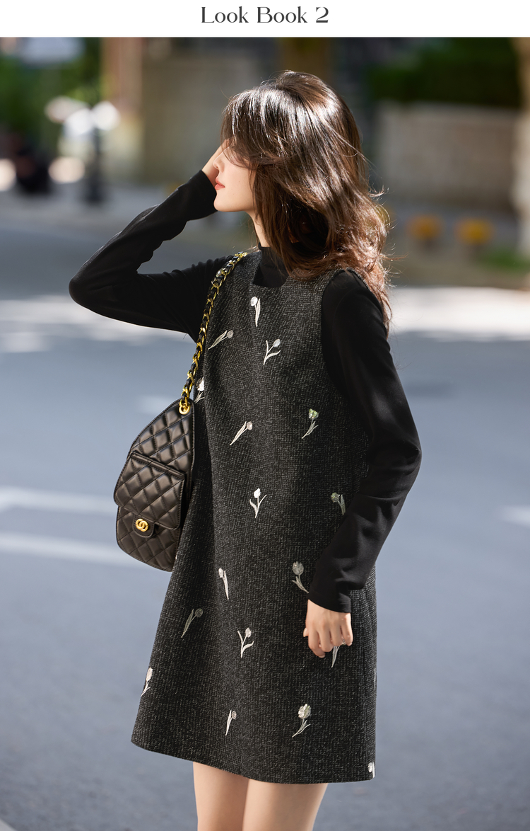 【年终特卖】熙世界郁金香刺绣背心裙套装女秋冬针织打底衫无袖直筒短裙两件套