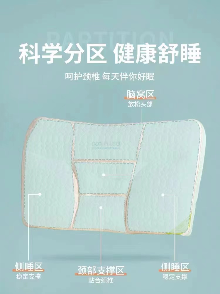 松植屋新品冰感小冰芯乳胶护颈枕360度颈椎贴合设计可机洗水洗/尺寸*47*74CM /枕芯高度7-8cm中低枕头