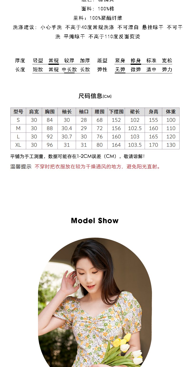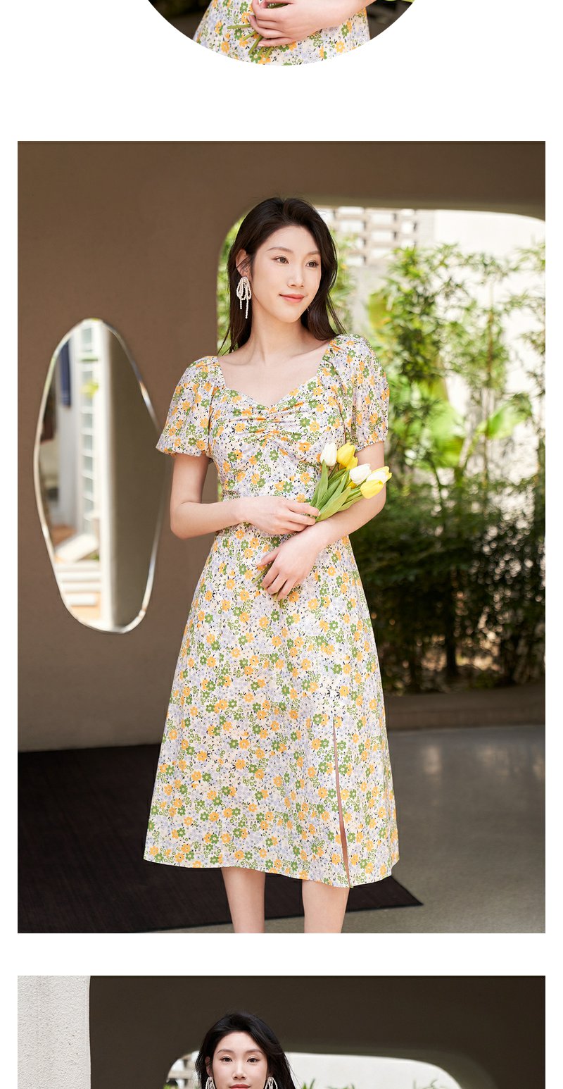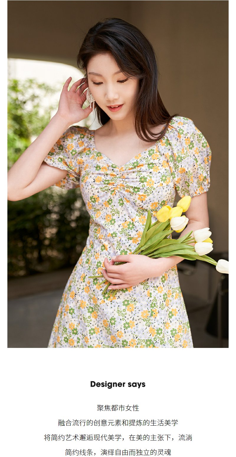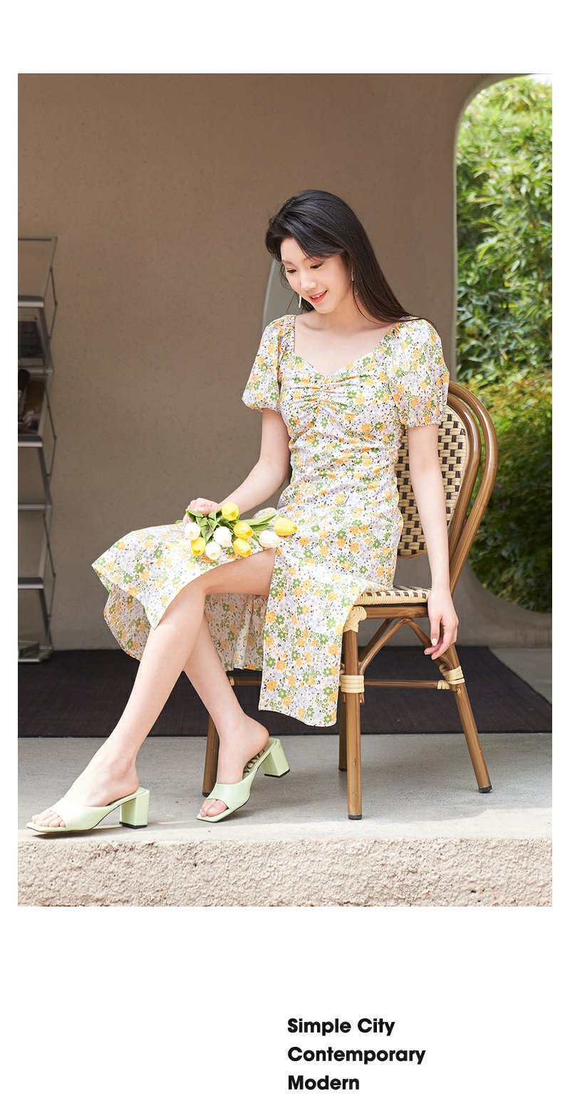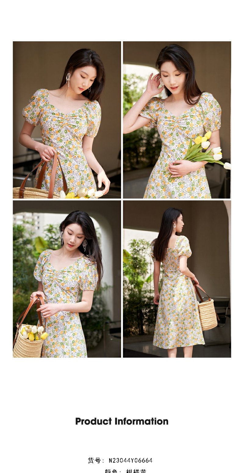 NEELLY纳俪商场同款碎花连衣裙女夏季法式茶歇泡泡袖开叉A字裙潮N23044Y06664