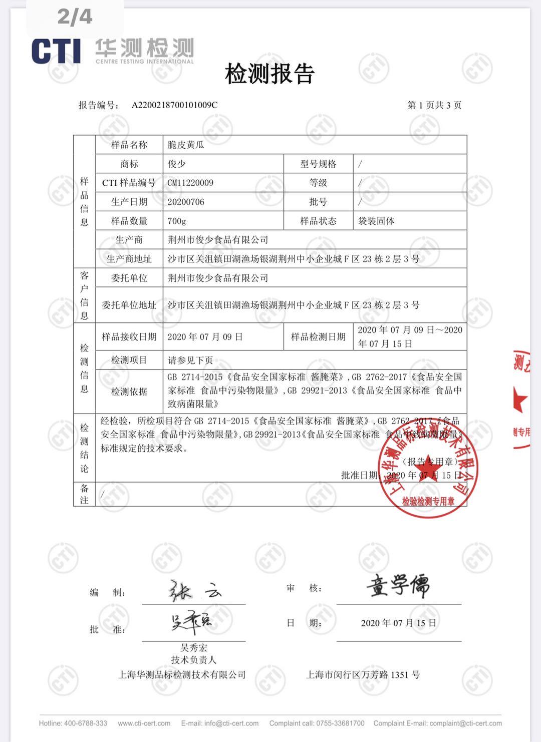 品名:脆黄瓜规格:250g/袋发货地/产地:湖北/湖北保质期: 0-5度冷藏10天,-18度冷冻保存60天,建议收到后尽快食用。包装方式:袋装物流信息:四通一达、顺丰或其它快递随机发货,不接受指定快递。不发货区域:新疆、西藏、内蒙、青海、海南、港澳台、疫情管控区。 |