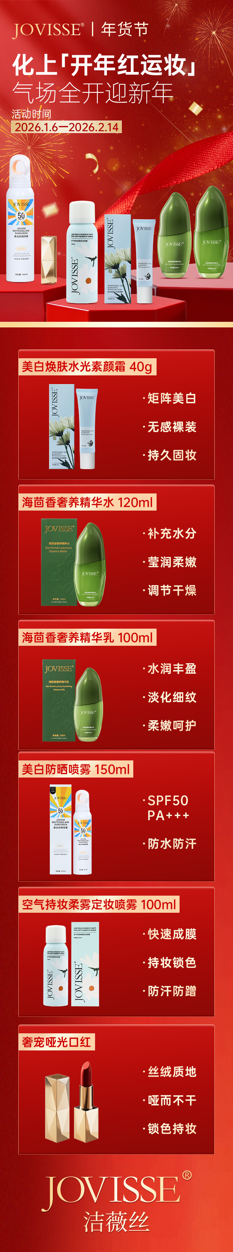 【🔥年货节】海茴香奢养精华水120ml+海茴香奢养精华乳100ml+空气持妆柔雾定妆喷雾100ml+美白焕肤水光素颜霜40g+奢宠哑光口红+美白防晒喷雾150ml【一套搞定招财开运妆🔥】