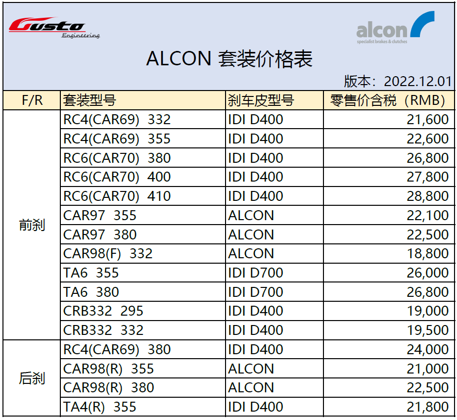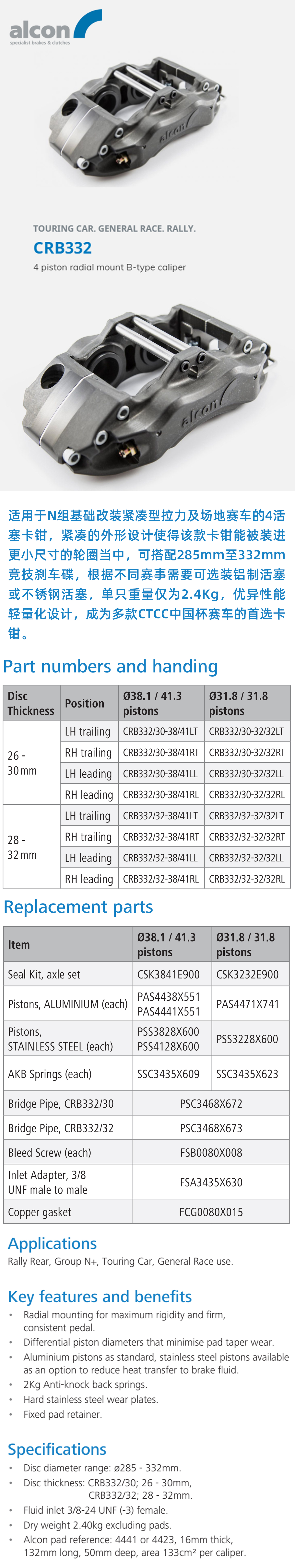 英国进口Alcon赛用刹车套件 TA6/CRB332/TA4后刹车
