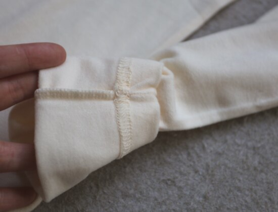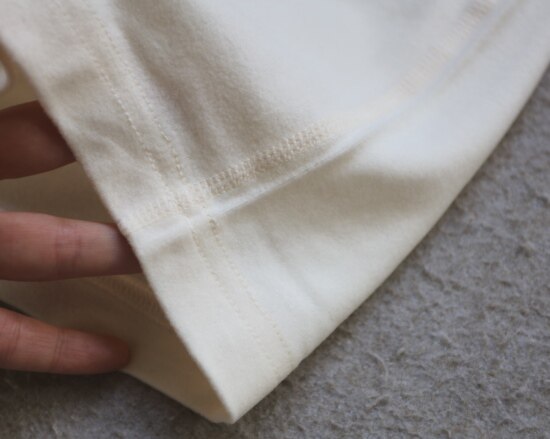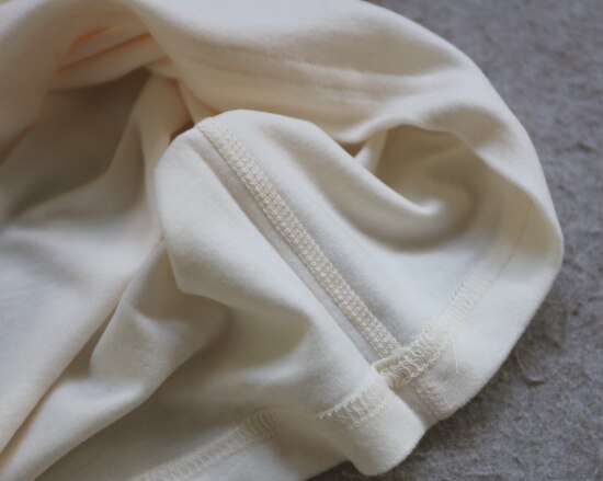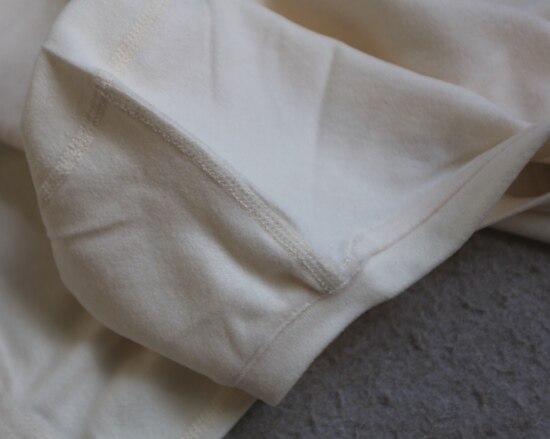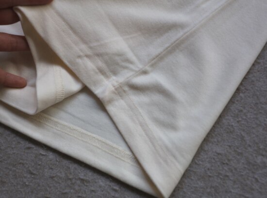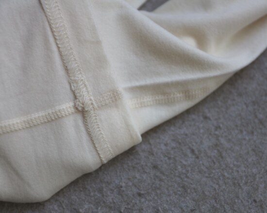 肩线及侧身拼接处 是四针六线的 其他位置 都是常规的双线 缝线都有弹力