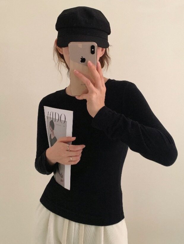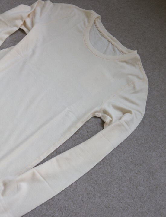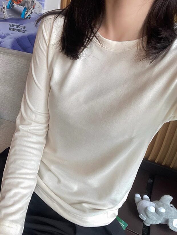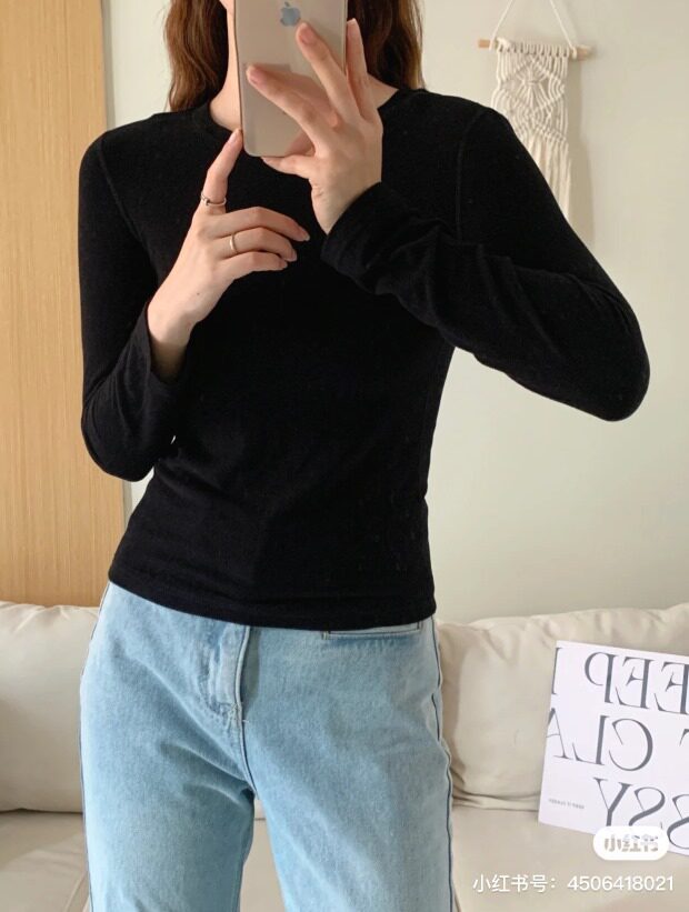 圆领款 我个人感受 比较典型的内搭保暖秋衣样式 小圆领 不露锁骨的那种