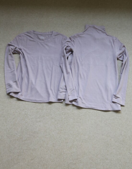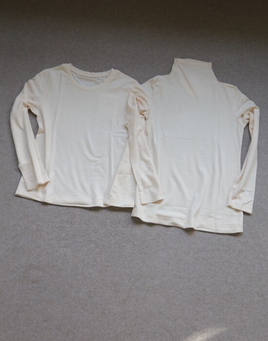 分别两个款 版型不太一样 圆领款/更偏秋衣类 高领款/内搭外穿 都没问题