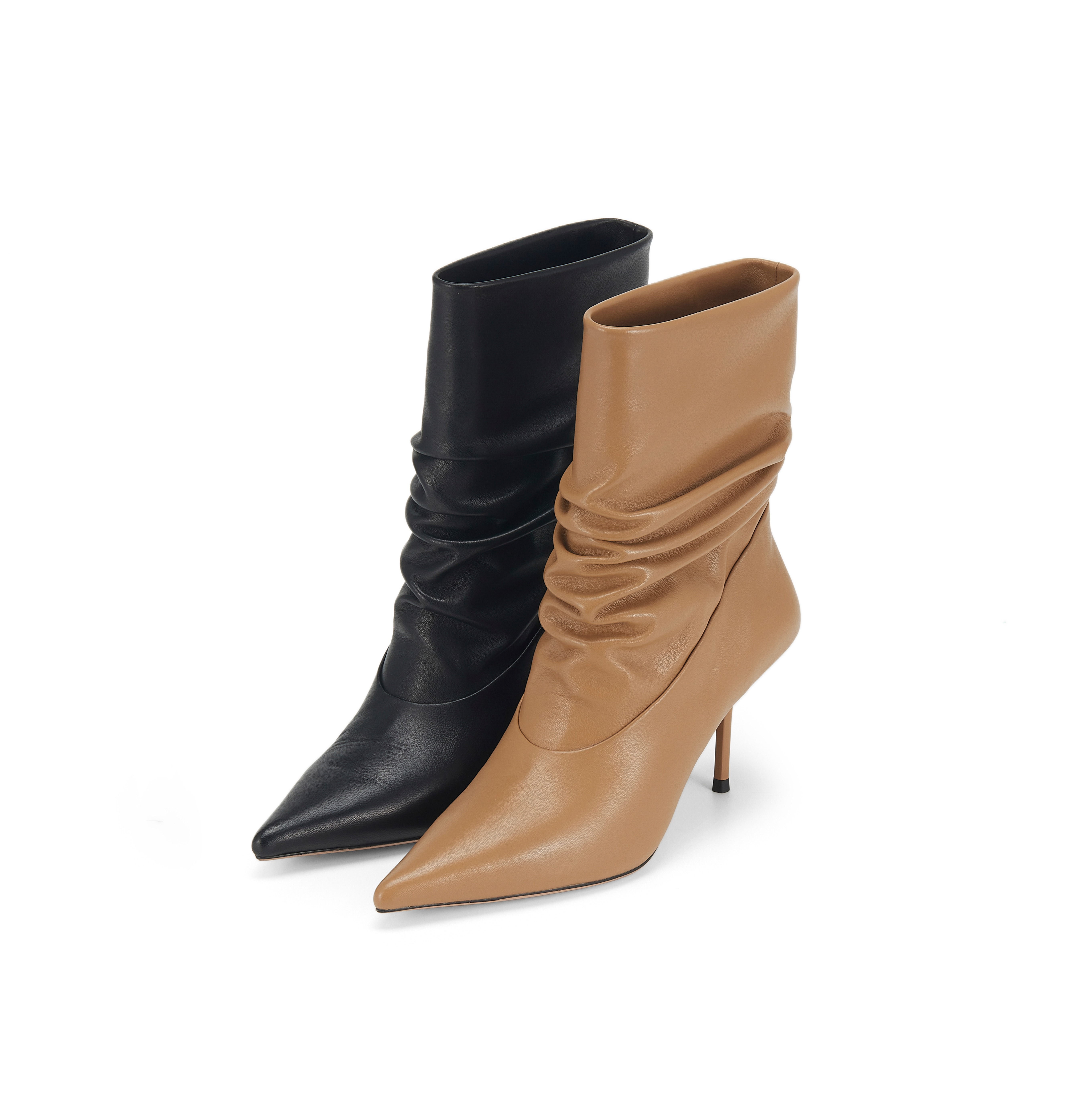 westory2024年秋冬季款纯色细高跟尖头性感长筒中筒瘦瘦靴W24DC84331
