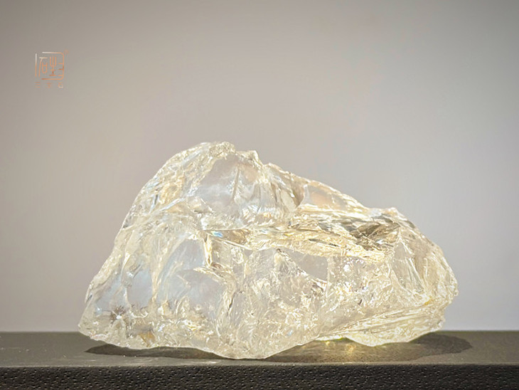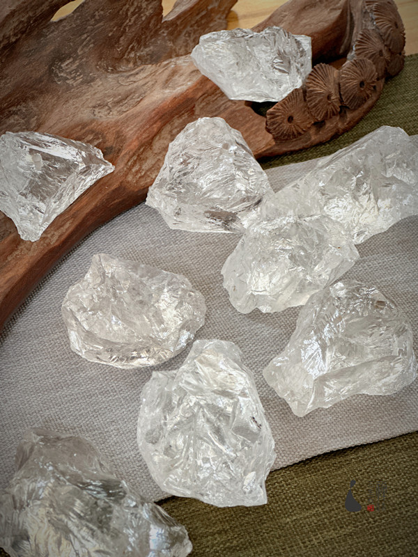 天然的白水晶原石在阳光的照射下,