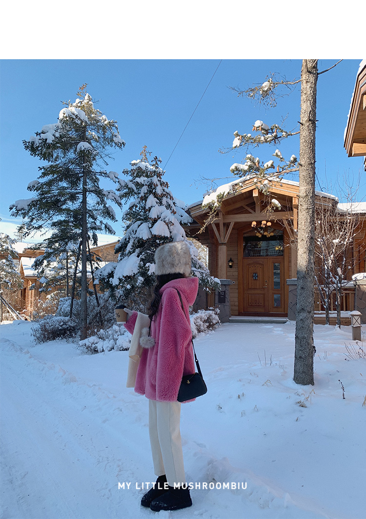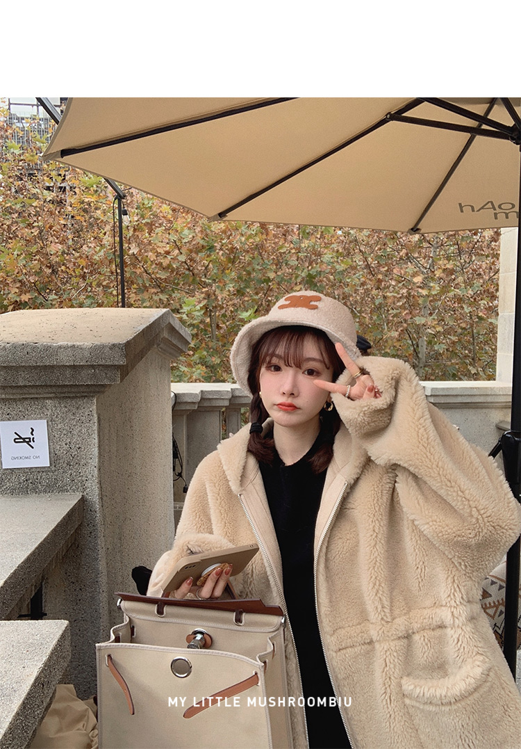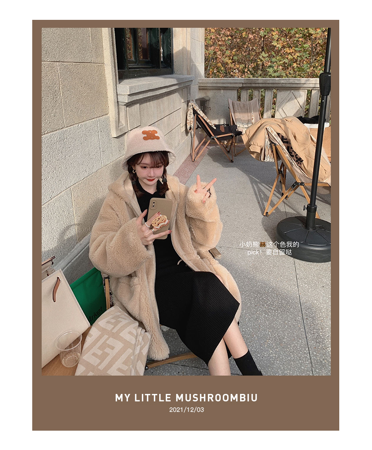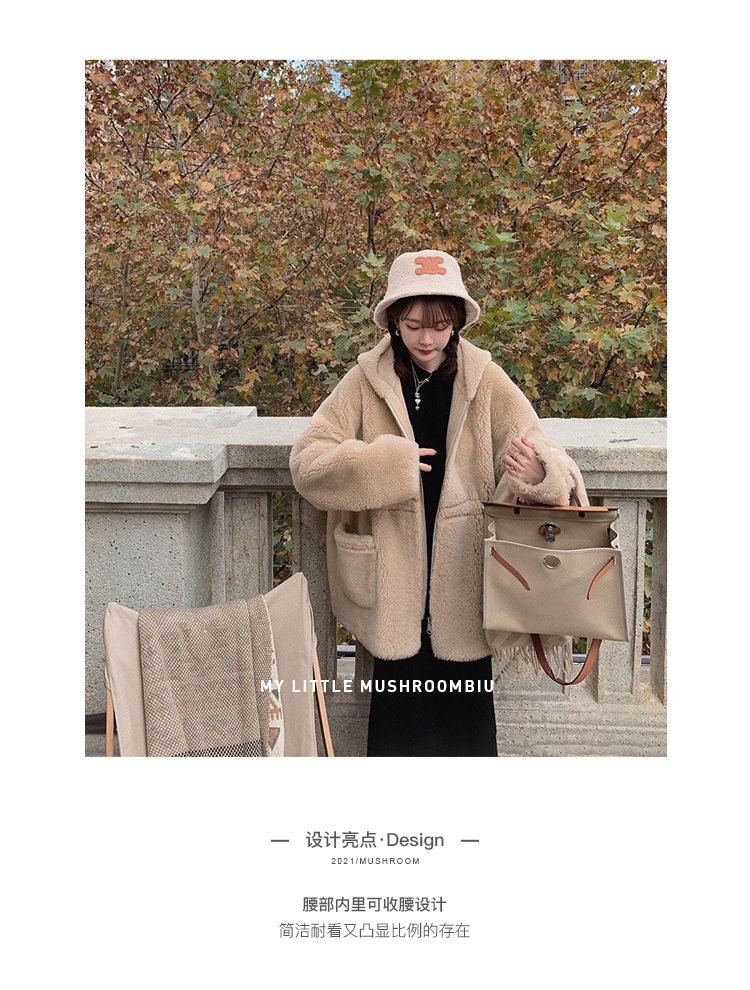 金蘑菇菇【今日特价树莓色小奶熊】软萌又休闲~可收腰哦 版型巨爱的毛绒外套